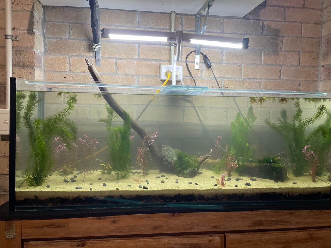 This is my 200L that I had initially set up to be a Walstad tank but since my plan was to have a large tank without large canister filter and minimal maintenance I decided to assist my Walstad with a small airstone wrapped in sponge to oxygenate the water and some water flow.