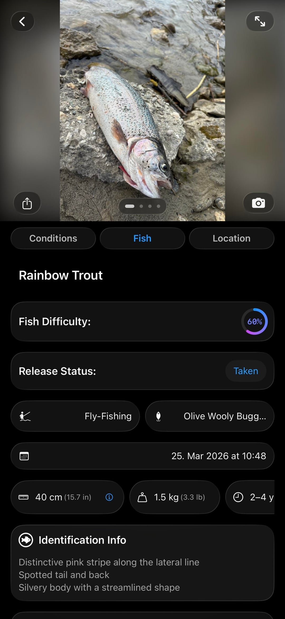 Got my first rainbow this season and it was so nicely colored 🙂 Got it on a wooly bugger on a 5 weight and put up an awesome fight. Excited temperatures are warming up so tomorrow should be a good day 🙂