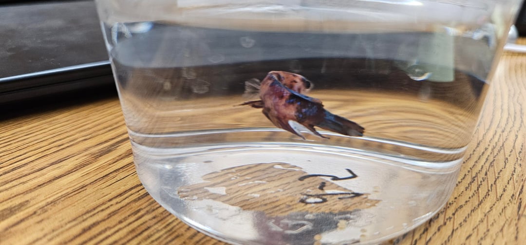 Hello please help! I recently got this betta and I realized that this white spot on his bottom fin is not color, it looks more like a fungus? Also he appears skinny. I dont want return him bc I fear they’ll dispose of him, id rather do everything I can to save him.