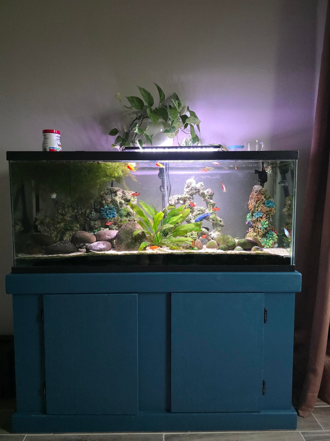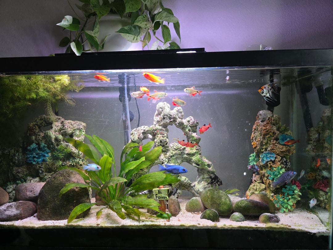 I started this hobby 10 sep 2024 when a friend gave me his 20gal. i loved it. some tanks have been broken down and not shown. the oldest running is the blue stand 55gal and yes i am collecting acaras and Mbunas. i will be doing a 171gal or so for them.