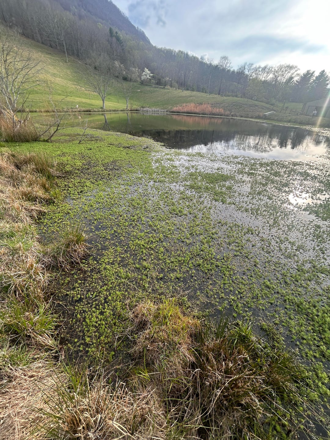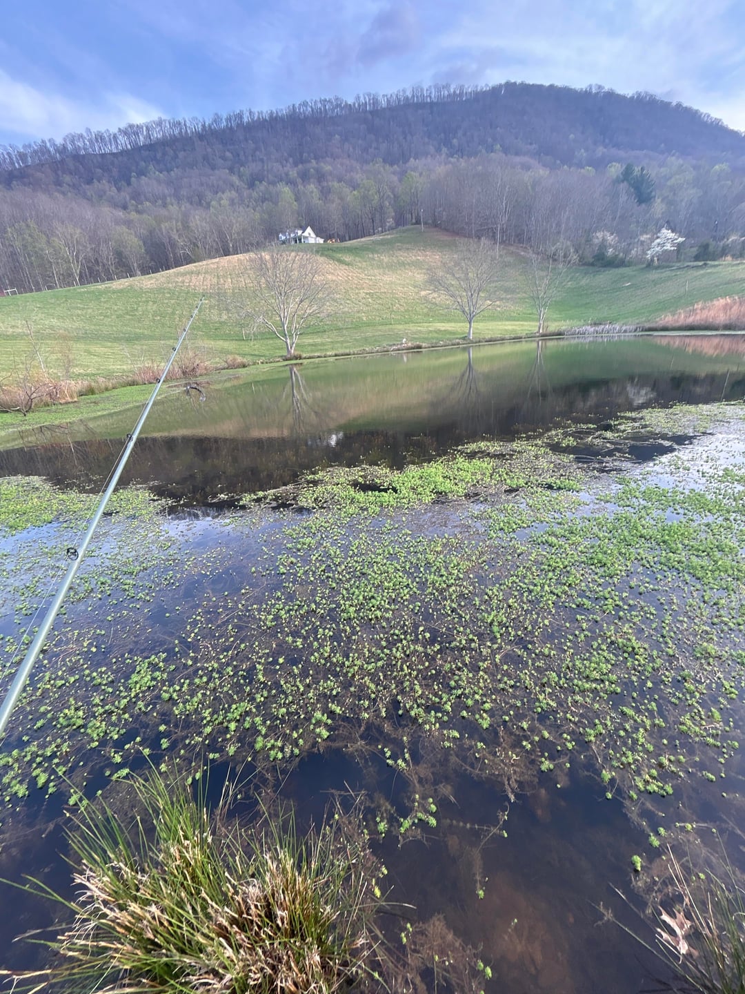 Made a post yesterday saying the bass in this pond won’t bite anything but a nightcrawler. Idk what kind of weeds these are but I went again today, seen a couple blow ups in the weeds, so I guess thats a good sign. Tried some top water, tried wacky rig senko (green pumpkin), tried a fluke, a spinner bait, Texas rigged senkos, red and black ribbon tails, creature baits, craws, every soft plastic I had in my tackle box just about it 😂 not even as much as a bite.