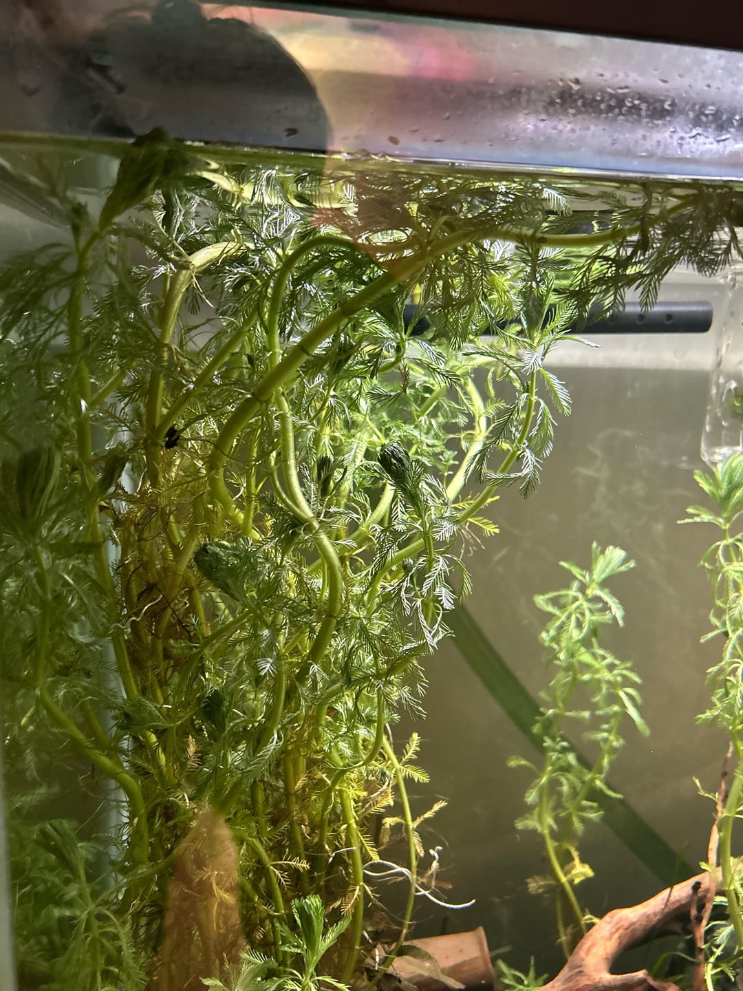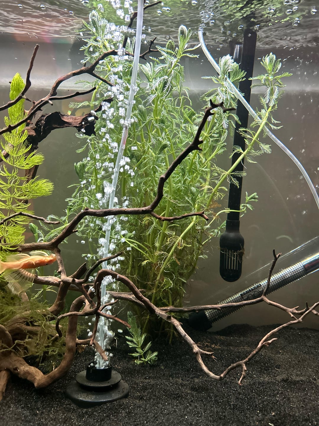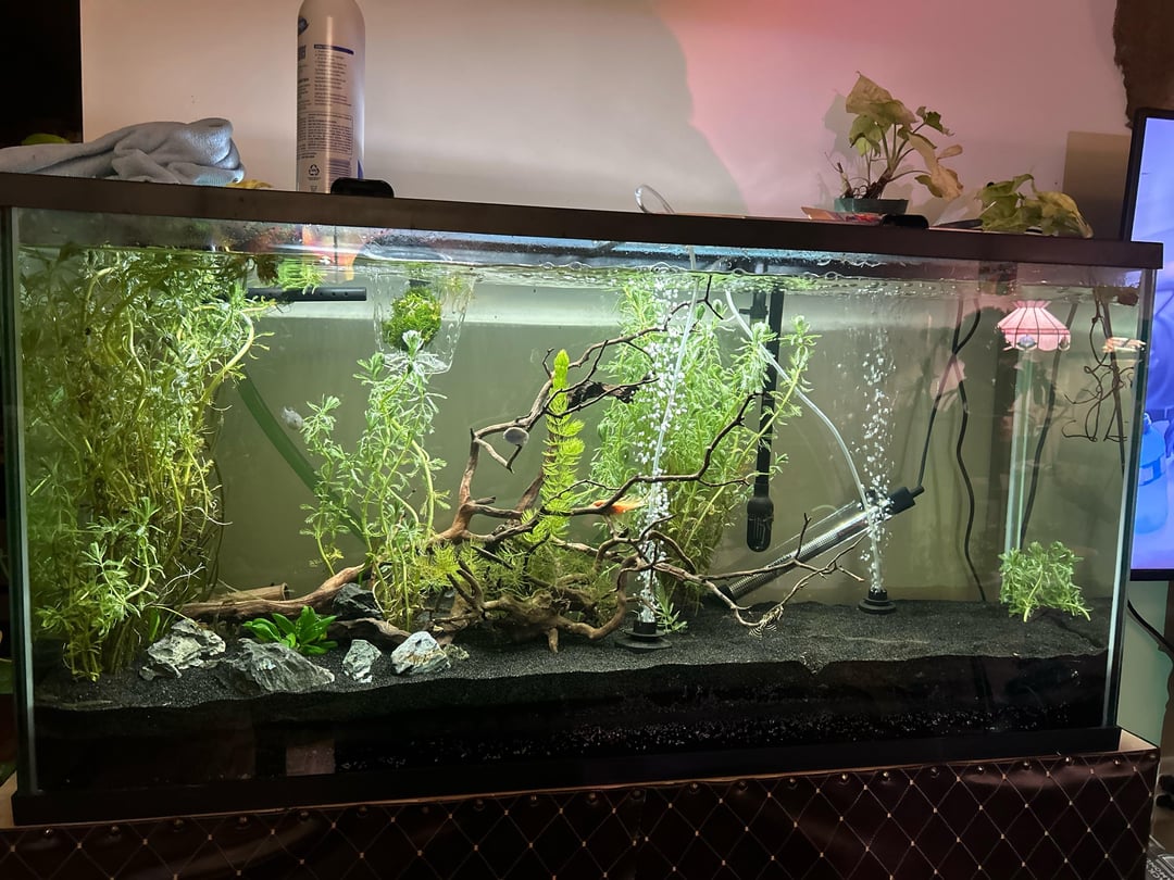 When I got back home I cleaned them up and soaked what I put in the tank in a solution of 3ml %3 hydrogen peroxide in 1 gallon of water for 5 minutes then rinsed them to hopefully kill any remaining algae. After planting what I did in the tank, I realized I collected way too many stems. Not sure if I should try to ___ them off or not. I definitely don’t feel like cleaning the rest of them up myself. For now they’re in a tub of water outside.
