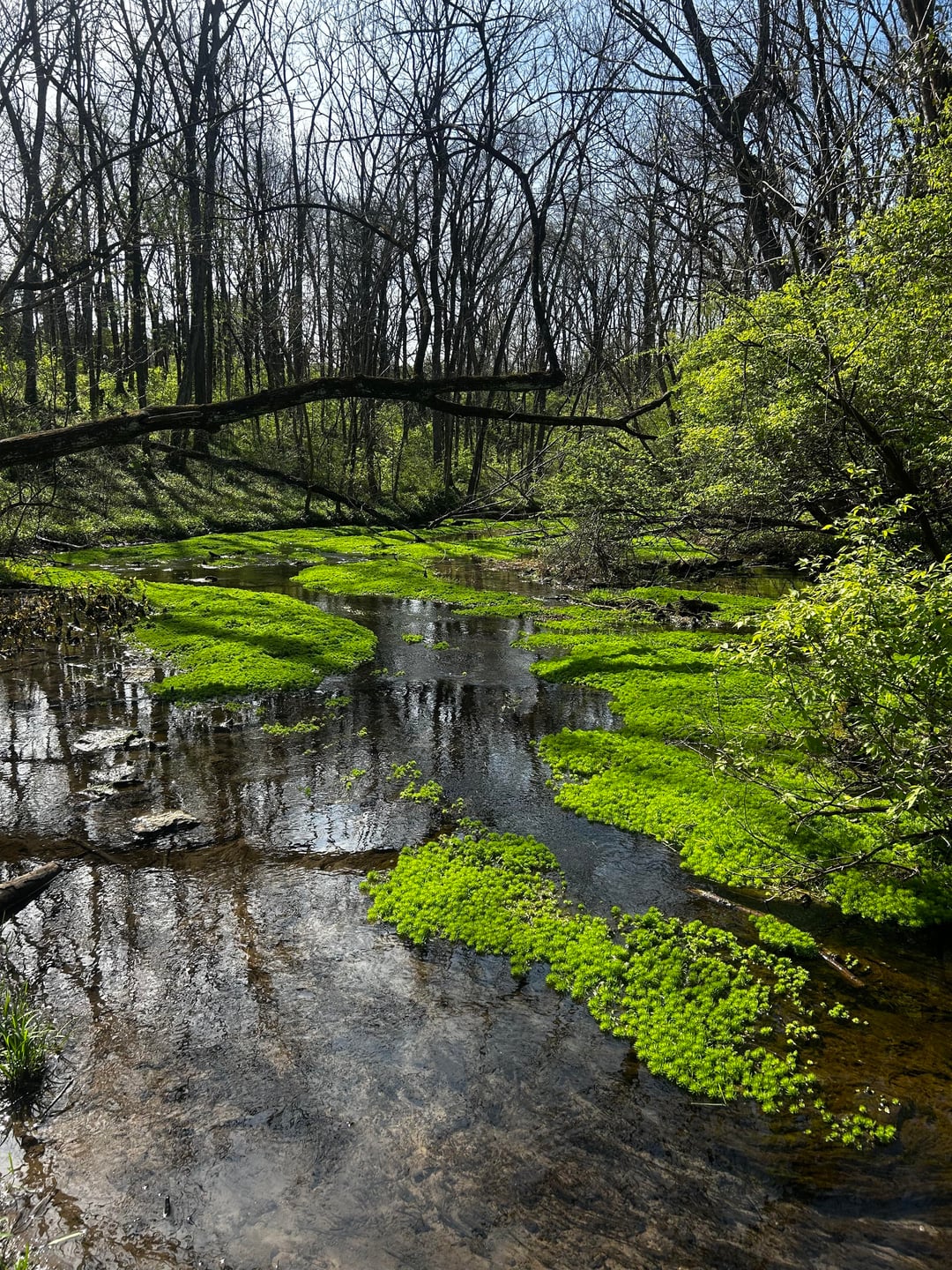 Foraging is illegal in most nature sanctuaries so I went today on Good Friday after a morning rain and there were only a couple of people but nobody near the plants so I was able to fill a small drawstring backpack with plants that I picked from a shadier spot as to avoid algae. I also tried my best not to do any wading.
