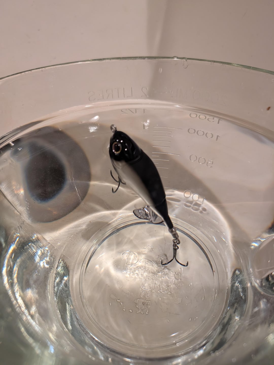 I took some pictures of it floating in a bowl of water and just the head is barely above water. I don't have any other top waters to compare it to so I don't know if that's normal or not.