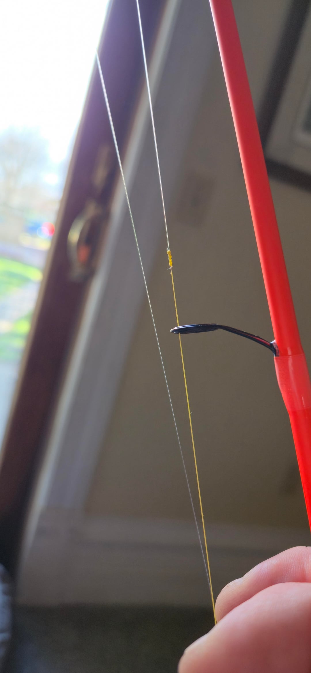 1. It looks skinny to my eyes. I’m a fan of the uni knot. The real tell is how well it flies through the eyes on the rod.