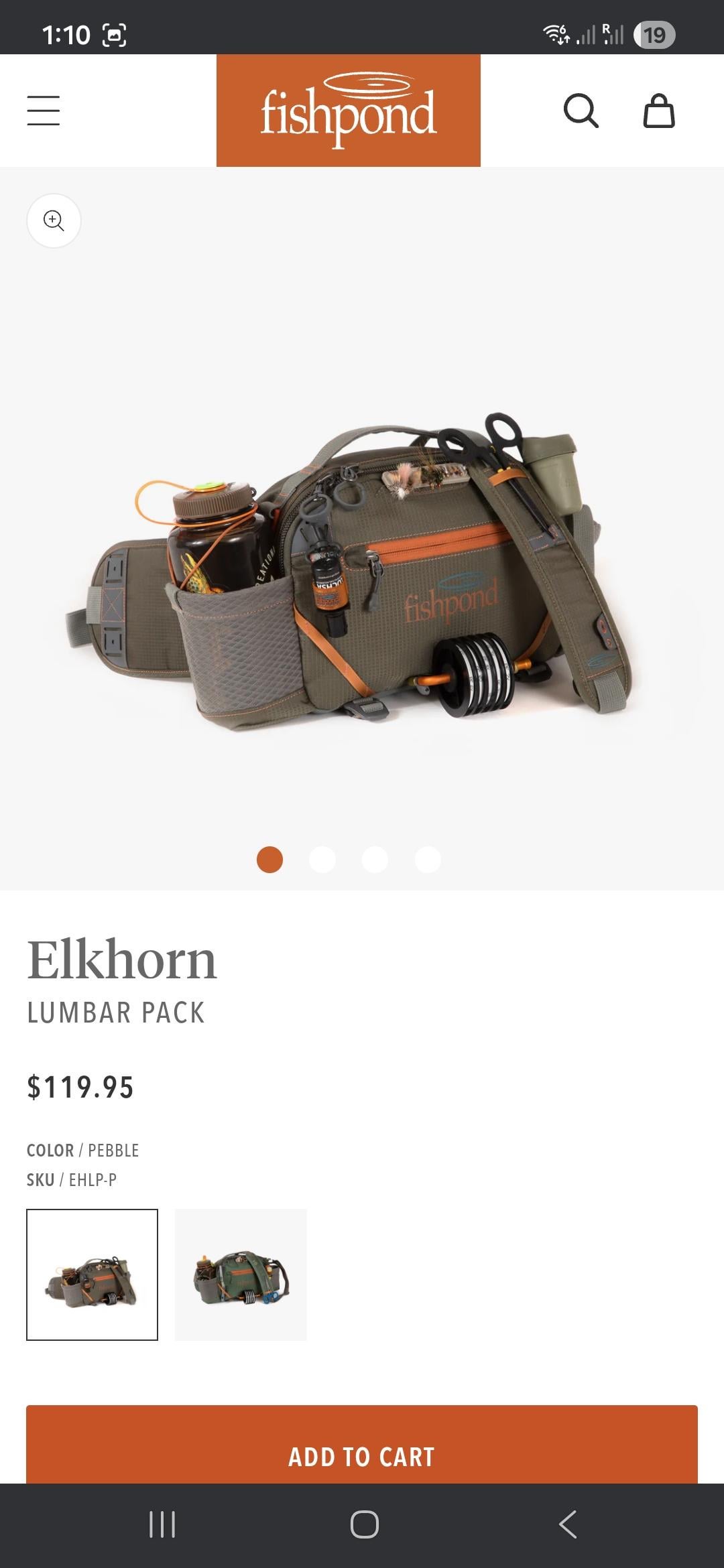 Edited to add that I ended up with an Orvis sling pack but I now see that they also offer a hip pack as well.