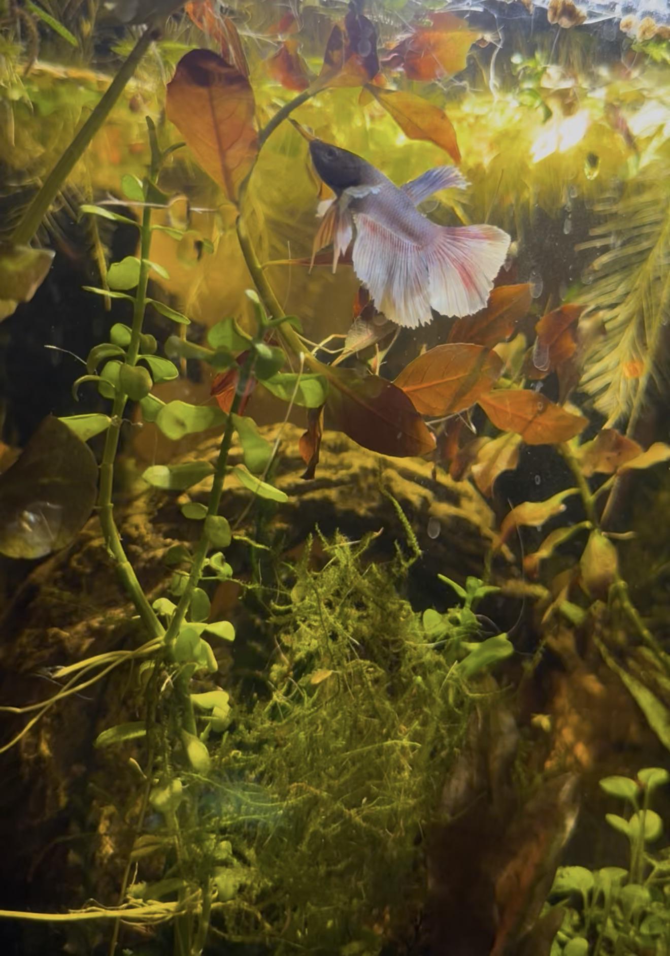 I work at a pet store and I honestly never buy the bettas we have (itâs hard) but I just donât want to support the fact that we even sell them. We got a new shipment in and this poor dude didnât even have a cup when he came in! He was at the bottom lying in a shallow puddle for hours until he arrived at our store. He miraculously survived and I couldnât stand to put him in a cup so I took him. He is very happily exploring as we speak!