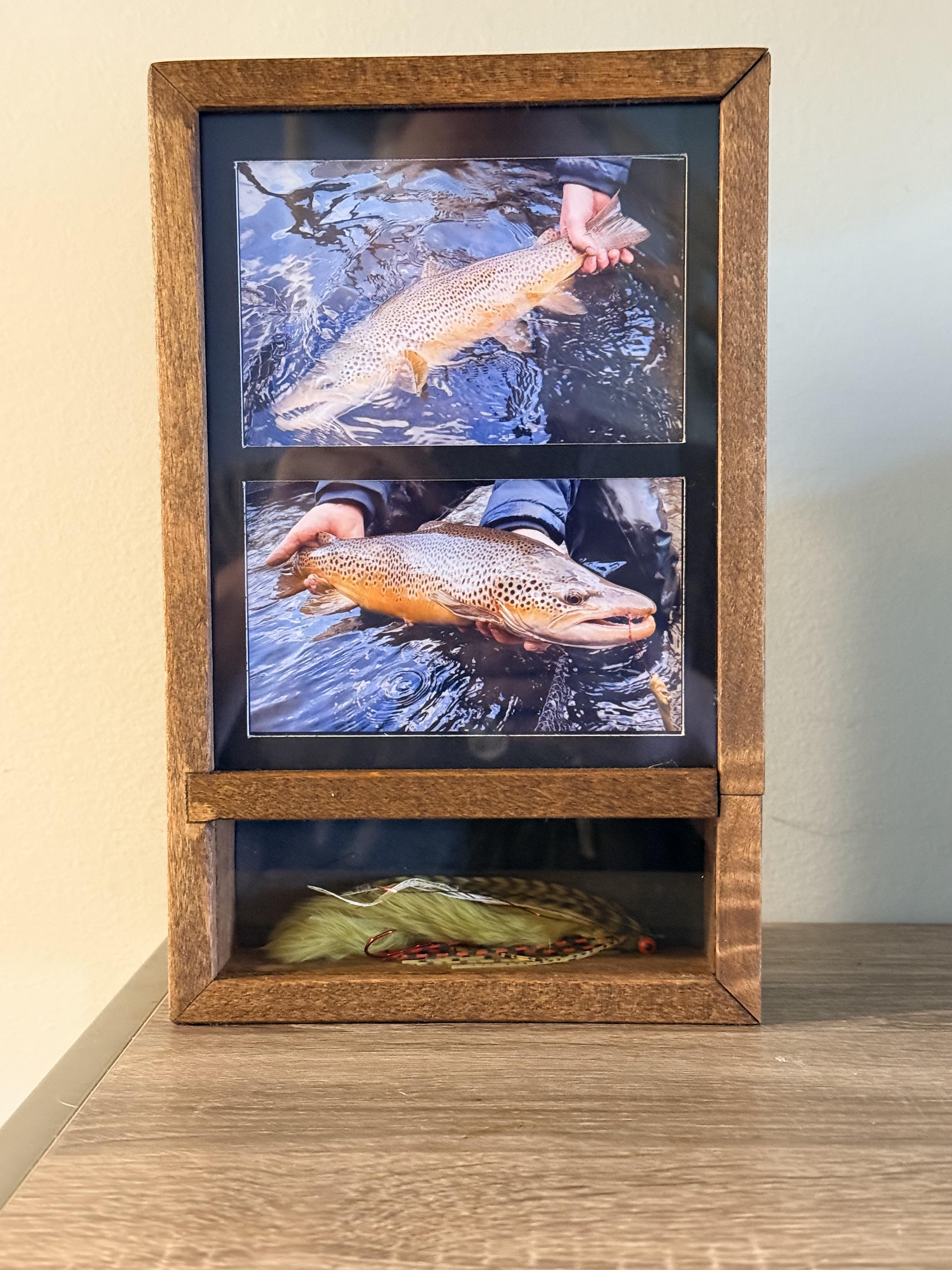 A little trophy box I made for a 24” brown trout I caught last fall and the home-tied fly I caught him on. Posted by SmartMammoth
