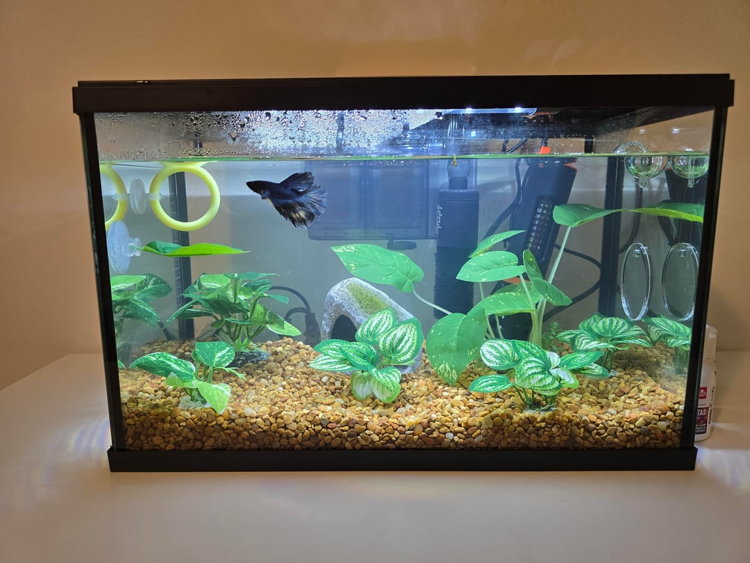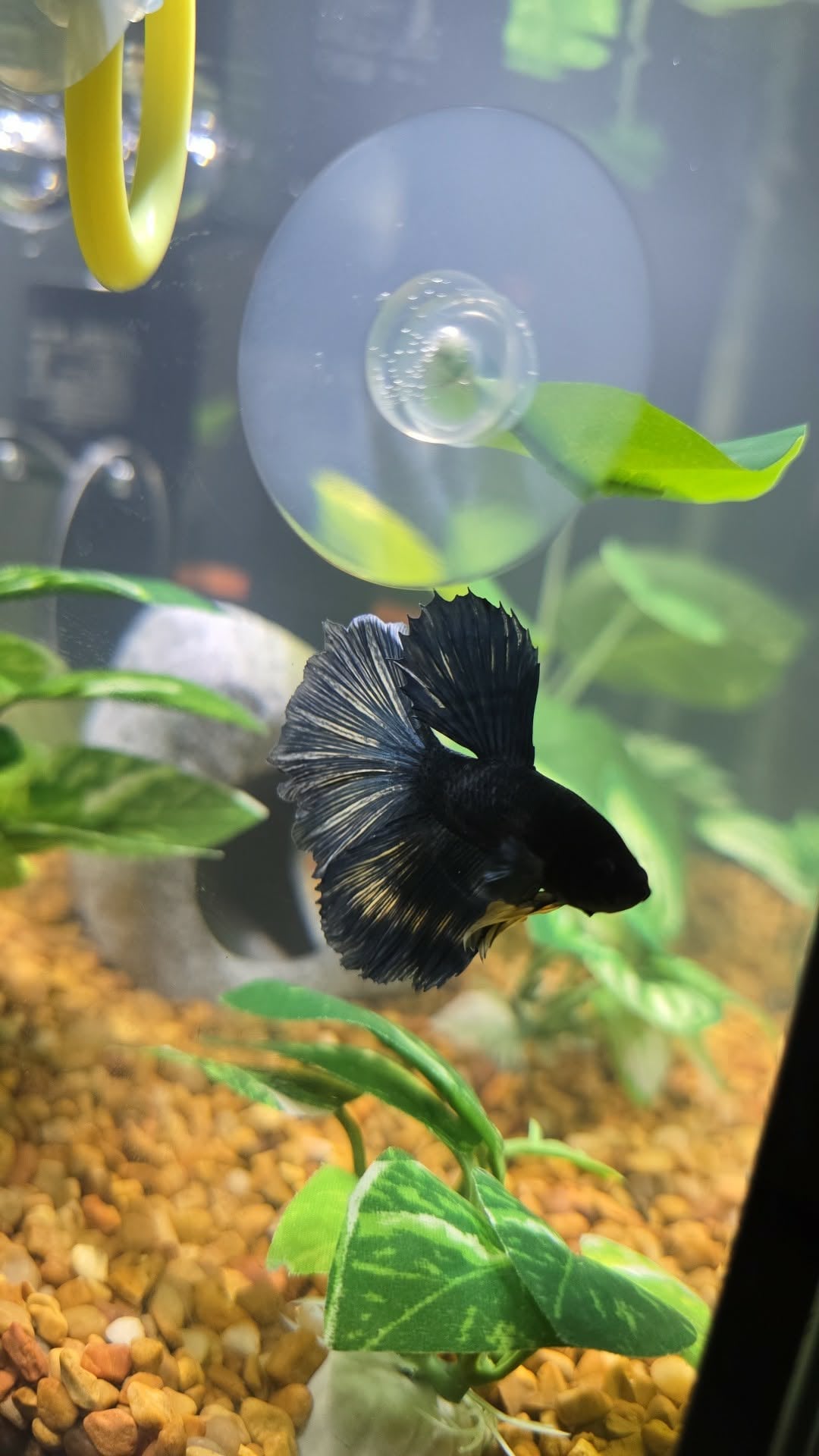 Introducing Sonic! I got this little guy yesterday. He's gorgeous with his blue body and yellow on his fins, which im hoping, as he gets older, the yellow will brighten up! 😃 Does his tank look okay? It's a 5 gallon.