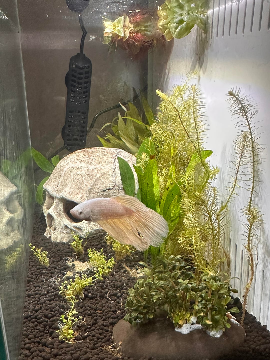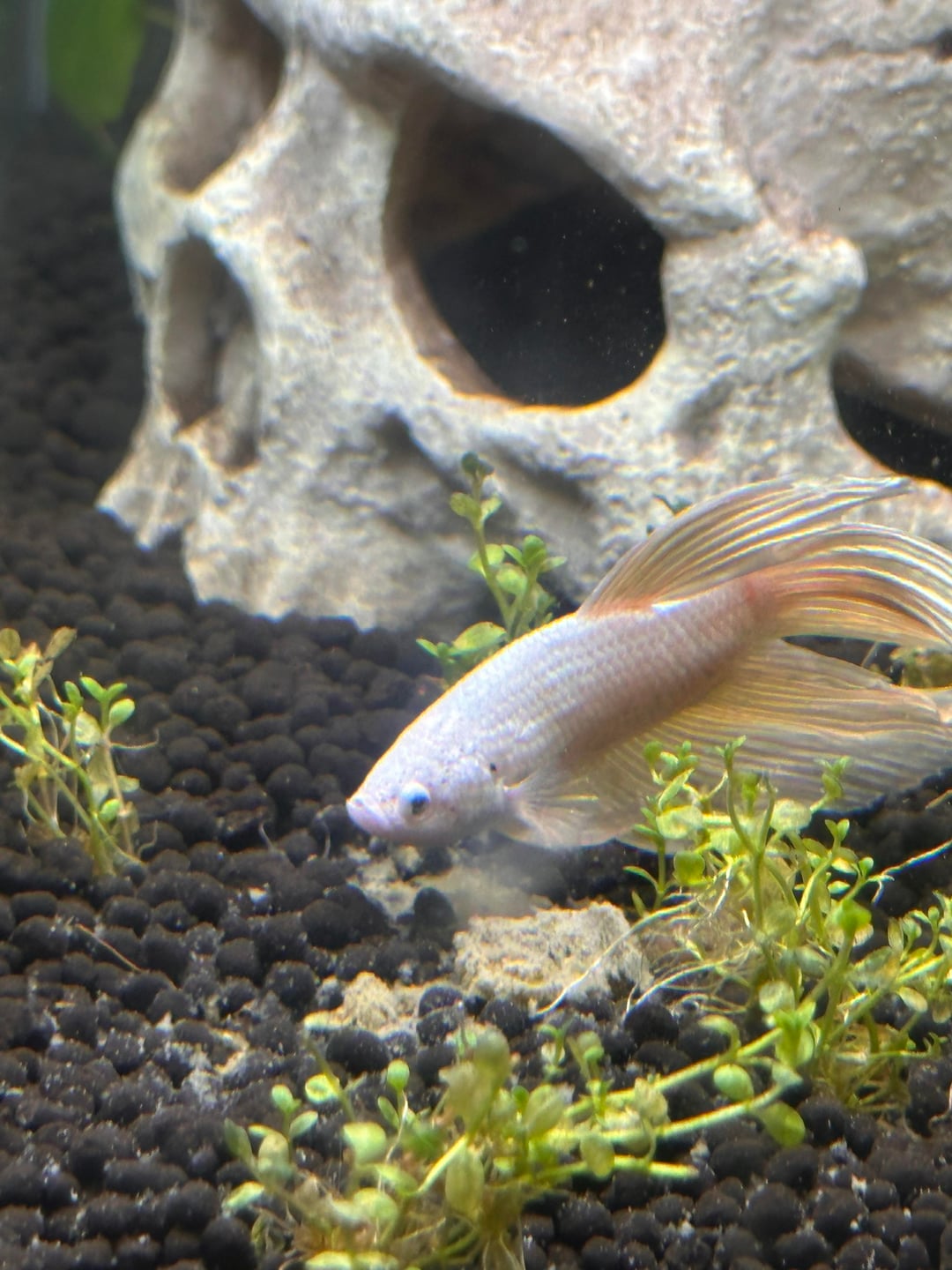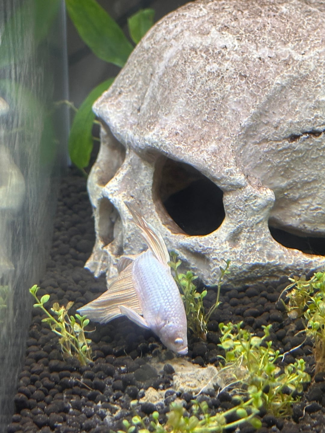 Meet Ilmari Kinnunen. He has been free from cup life for 4 days now. He made a shrimp friend and takes naps in a plant, also made his first bubble nest. He is in a 5 gallon while I cycle a 10 gallon for him. My question is this, he will only eat the shrimp’s algae wafers that have melted on the bottom of the tank! No pellets or tropical fish flakes. Should I try something else?
