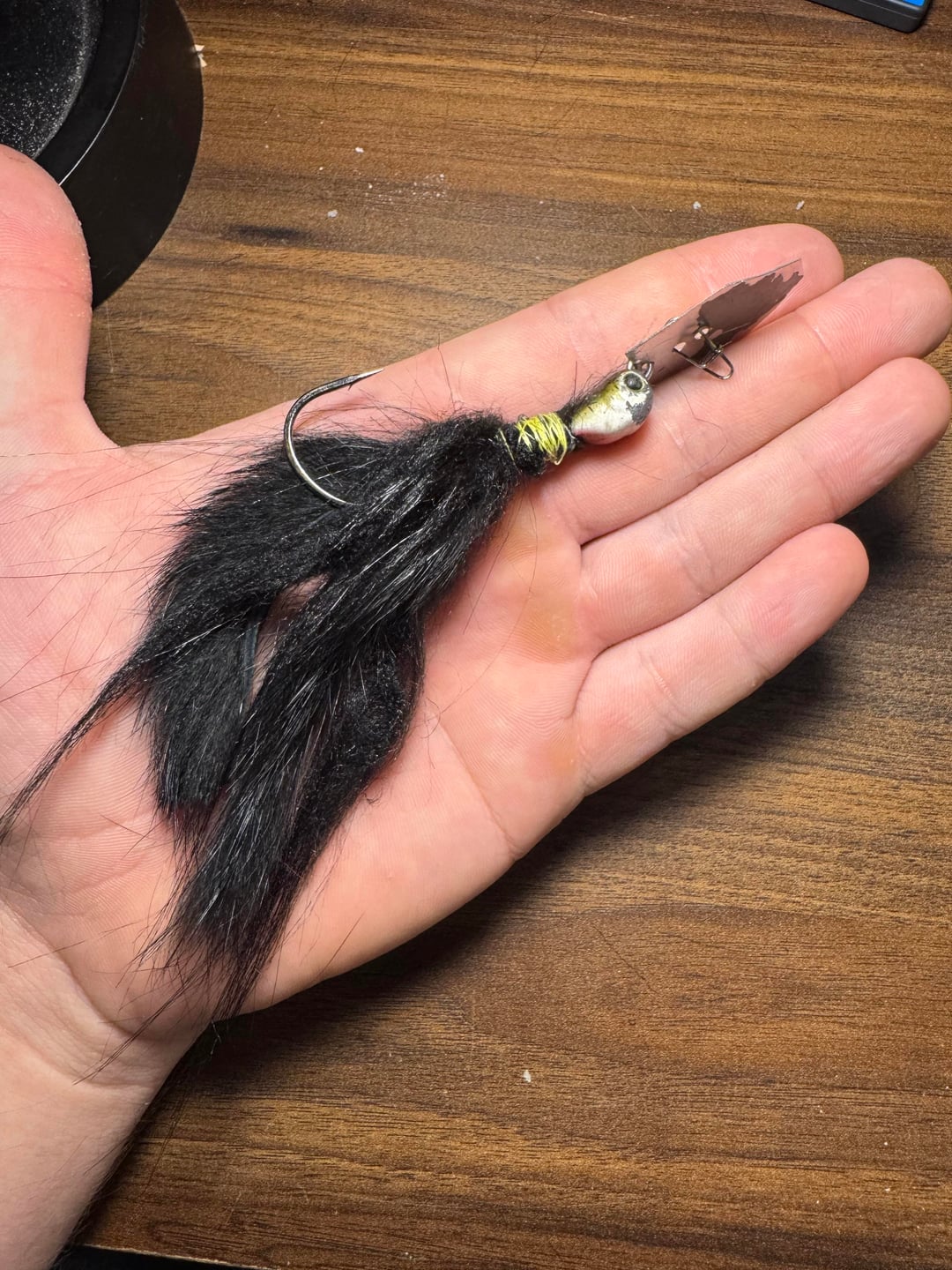 By no means a professional tying job, but picked up some black hair from a local fly shop and converted an old jackhammer that had the skirt destroyed! Super hyped to throw this next time I’m on the water!