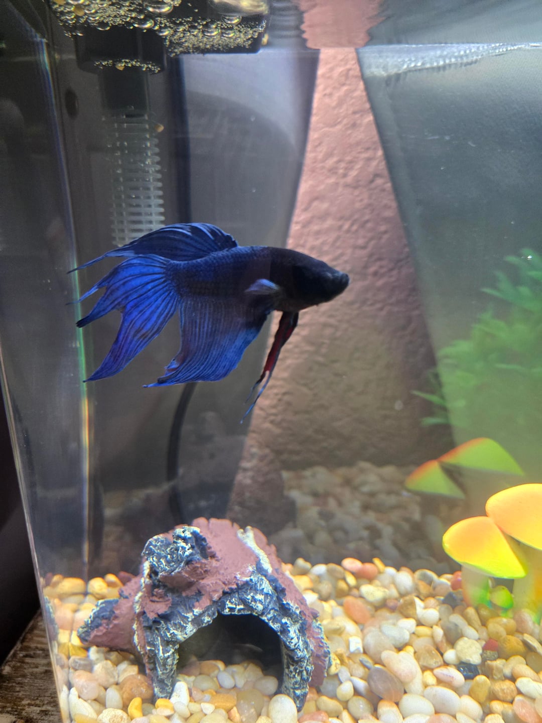 my beautiful boy 'blue' is gone officially. i put him to rest after seeing him struggle and i no longer wanted that to continue. i did cry doing it. i will miss him so much. thank you to this subreddit for helping me as long as possible. i've taken in so much information. i will miss him as i stare at the empty tank in my room. i only had him for two years but those were filled with joy and pride having a sweetie like him. i hope his soul is watching over me. i don't regret getting him at all and i am so lucky to have had him as my first pet ever. he kept me company when i was lonely, sad, and anxious. i was so happy seeing him use the new hiding spots or resting on the plants i got him. eee i had a blast. bye baby 🙁