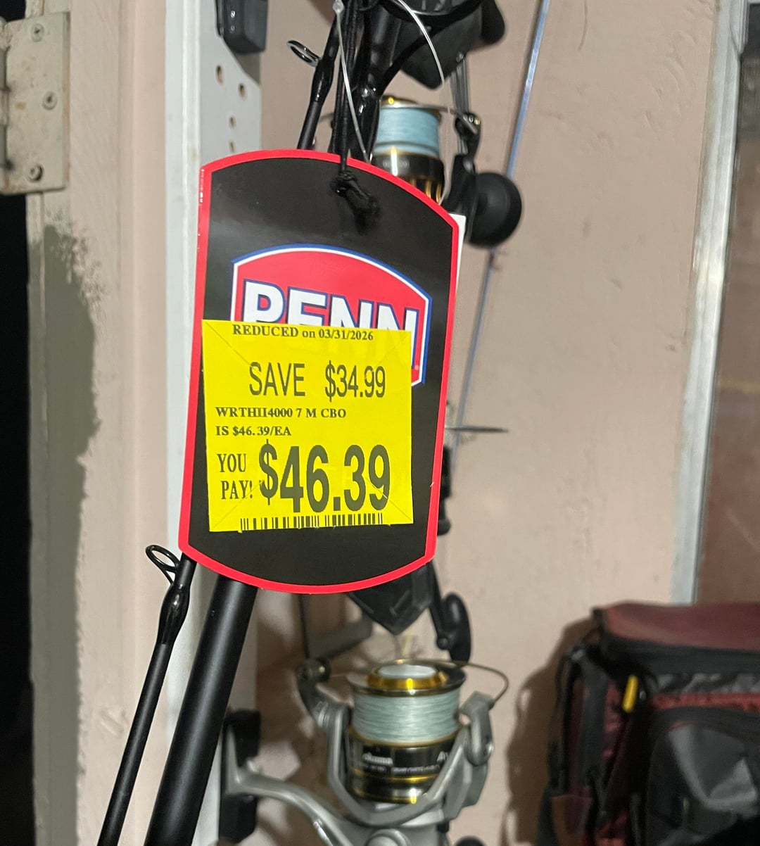At Walmart today and found five of these thinga sitting on the racks with a discounted price tag. These things nornally comes as a combo. One of two things I can think of why it’s heavily discounted. Either someone stole the reel that came with the rods or the reels were defective and Wally had no choice but to sell the rods for a loss. I already own one and really like it for surf/jetty fishing. Super light but durable.