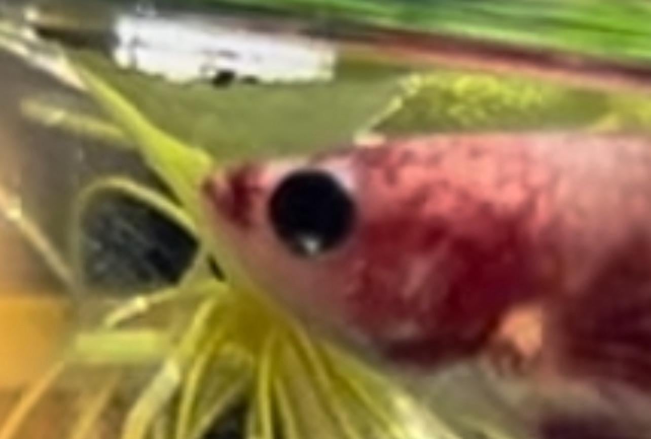 This is my cute girl betta named Chili!! This is the best closeup I was able to get with her naturally red lips. That’s the reason she stood out to me in stores and I’m so happy to now have her in a gorgeous planted 10 gallon tank in my room.