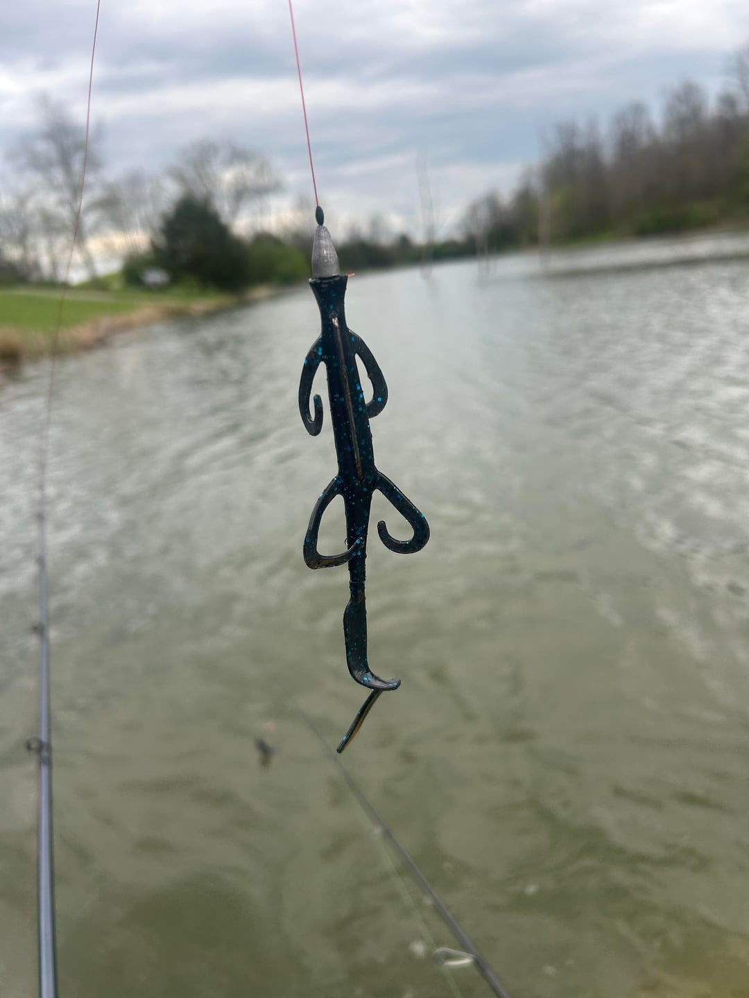 So I rigged up a plastic worm like I would a live one, (basically a worm knot) and dropped it in where I saw that bass. 10 seconds later I’m pedal boating back to the cabin to show off my fish.