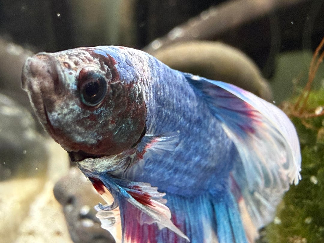 After her passing i decided to look for a new betta and i came across this guy! Decided to name him Iris, he’s been doing really great in his new home. I absolutely adore his colors, and now i have two beautiful blue boys! Here are some photos i managed to get of him, and one of my fave photos of my little girl Mika 🙁