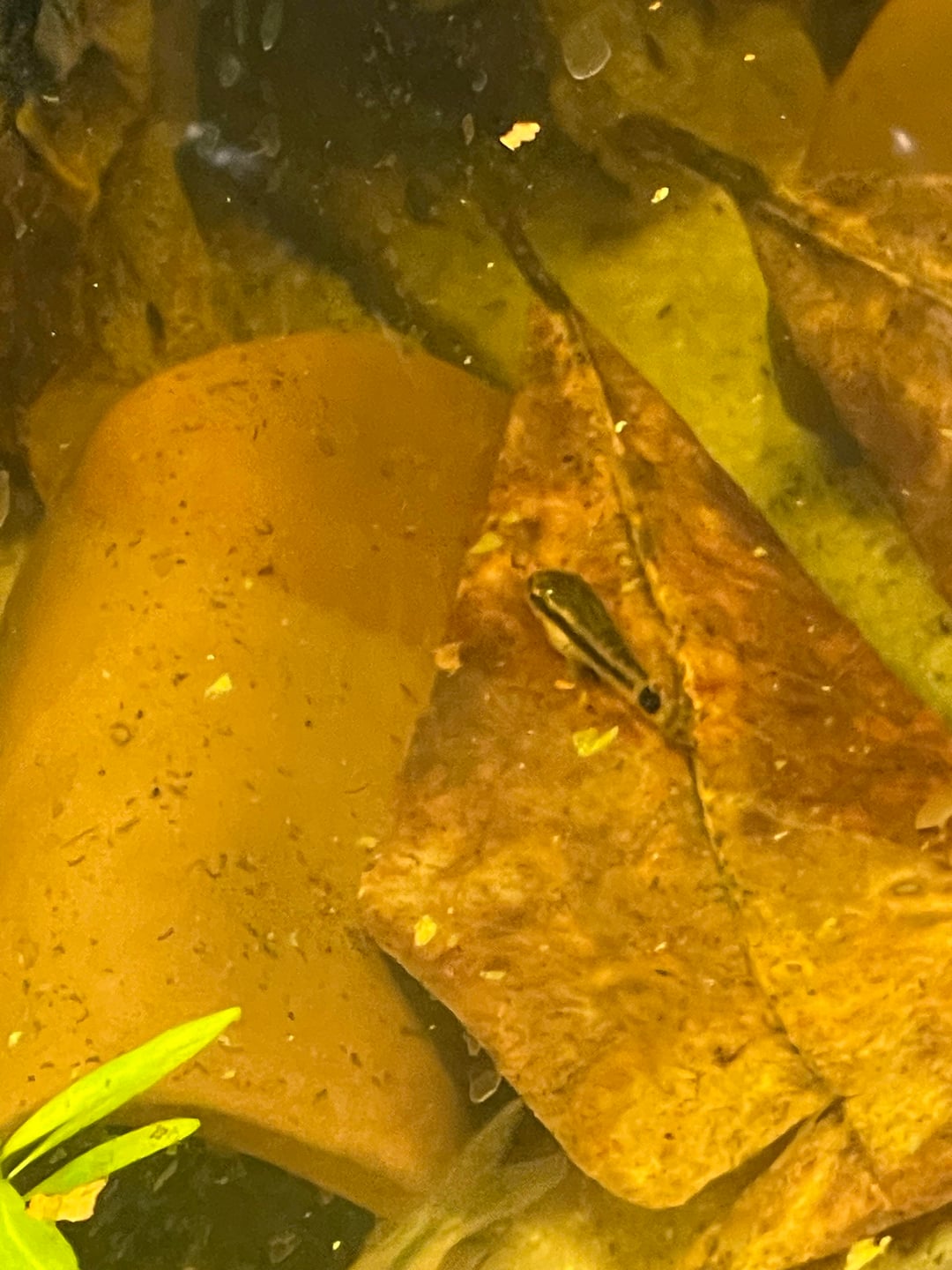 Although I originally had 5 oto's, 3 happened to die off but two still remain. I dont exactly know how to sex them but this one has an exceptionally large belly compared to my other. I do like to plumpen up my fish during the wintertime (Nov-Feb) but now it's march.