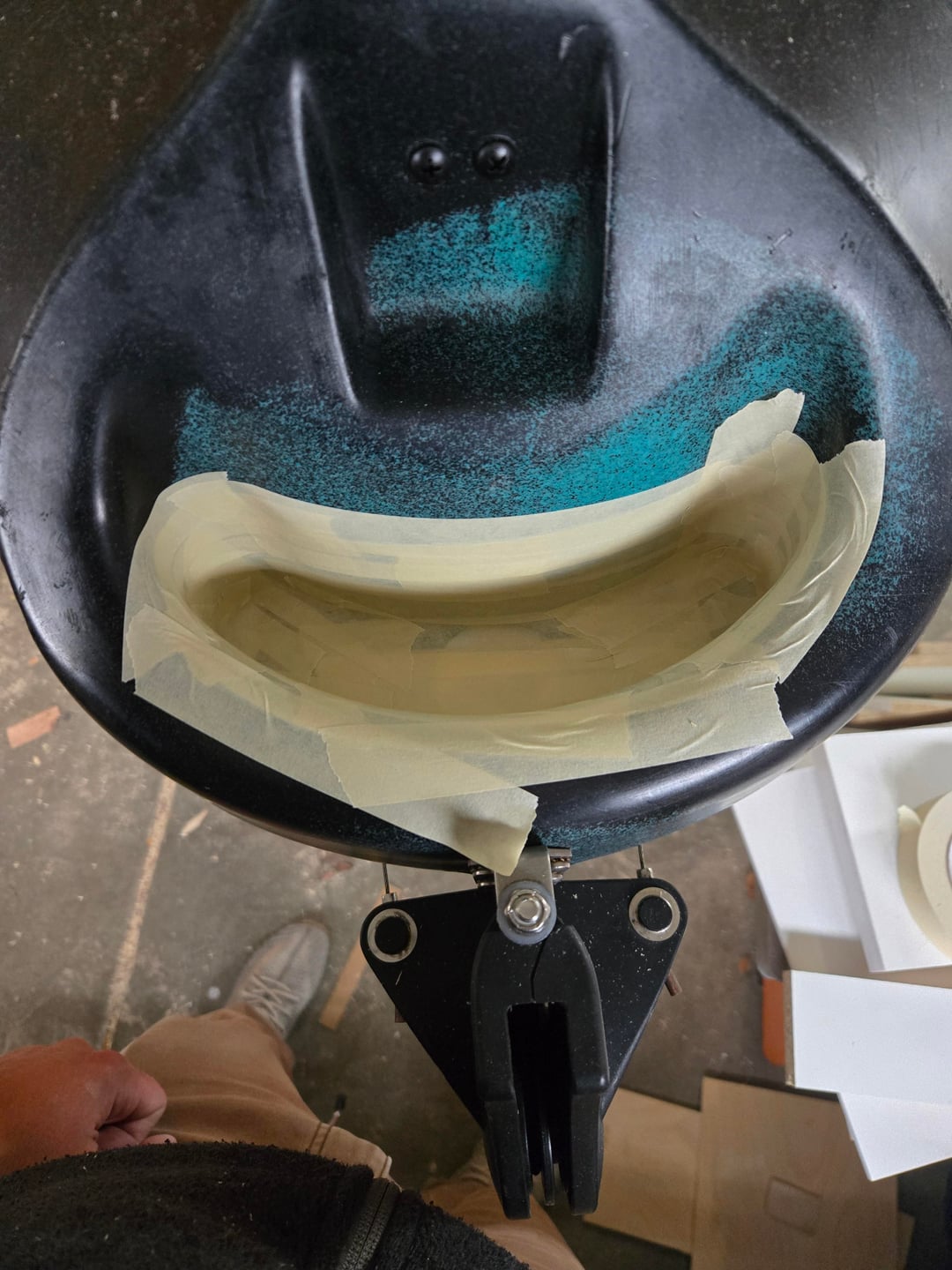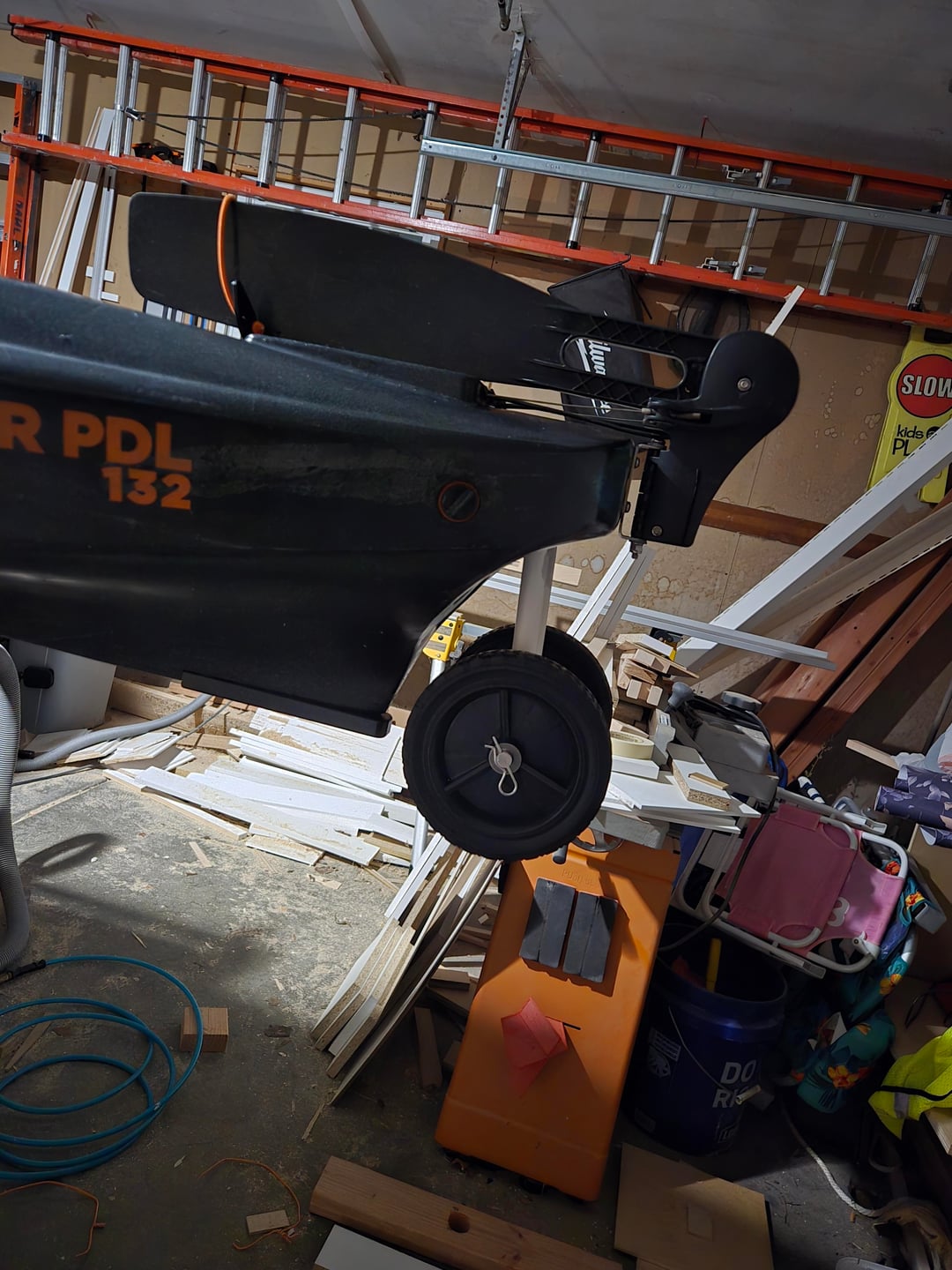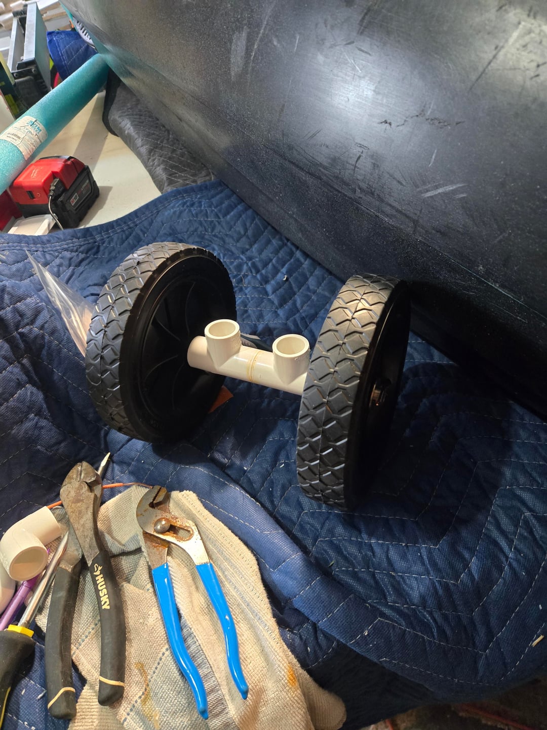 It probably sounds stupid, but I never liked how a cart or any kind of wheels look on a kayak once it is already in the water. When I saw the rear 'handle' on the Bigwater 132 I figured I can take a shot at making my own compact wheel attachment that can easily fit in the front hatch afer use. I havent used it yet, so cant say how well it rolls. Sorry about the mess in my garage, Im always working on something around the house and its just impossible to keep it clean.
