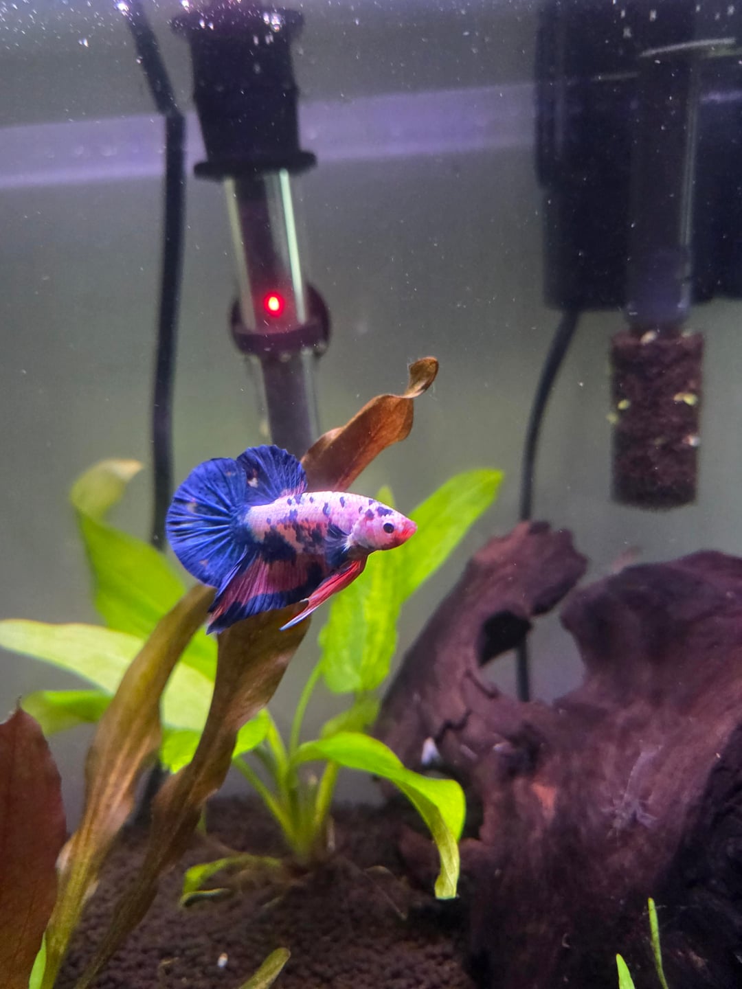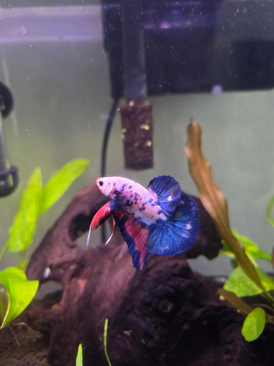 I got him from a very nice fish store where he was in his own 5 gallon tank along with all their betta. I thought he was vibrant when I got him so maybe I just got him young? I thought they were only pale when kept in big chain pet store cups. Either way I'm excited to see all this color and have no clue if he'll keep going!