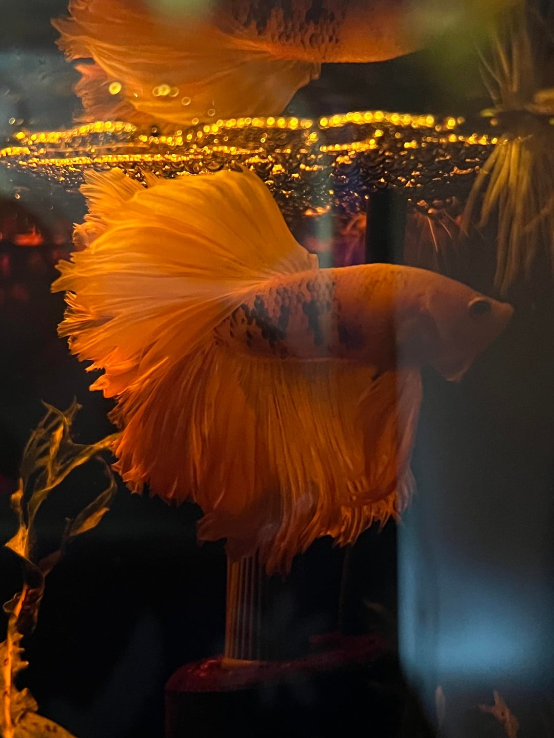 hi! this is my first experience with a long finned betta. i currently have 4 short tailed and decided i wanted to at least try something new. he’s been with me for about 3 weeks now. i know their long fins are very delicate and its made me very scared of anything happening. i dont see any tearing or perforations anywhere, but im wondering if they are growing? he has started getting painted blue from the day i put him in the tank. the first picture is current and 2nd was the day we got him. thank you for any advice and input!