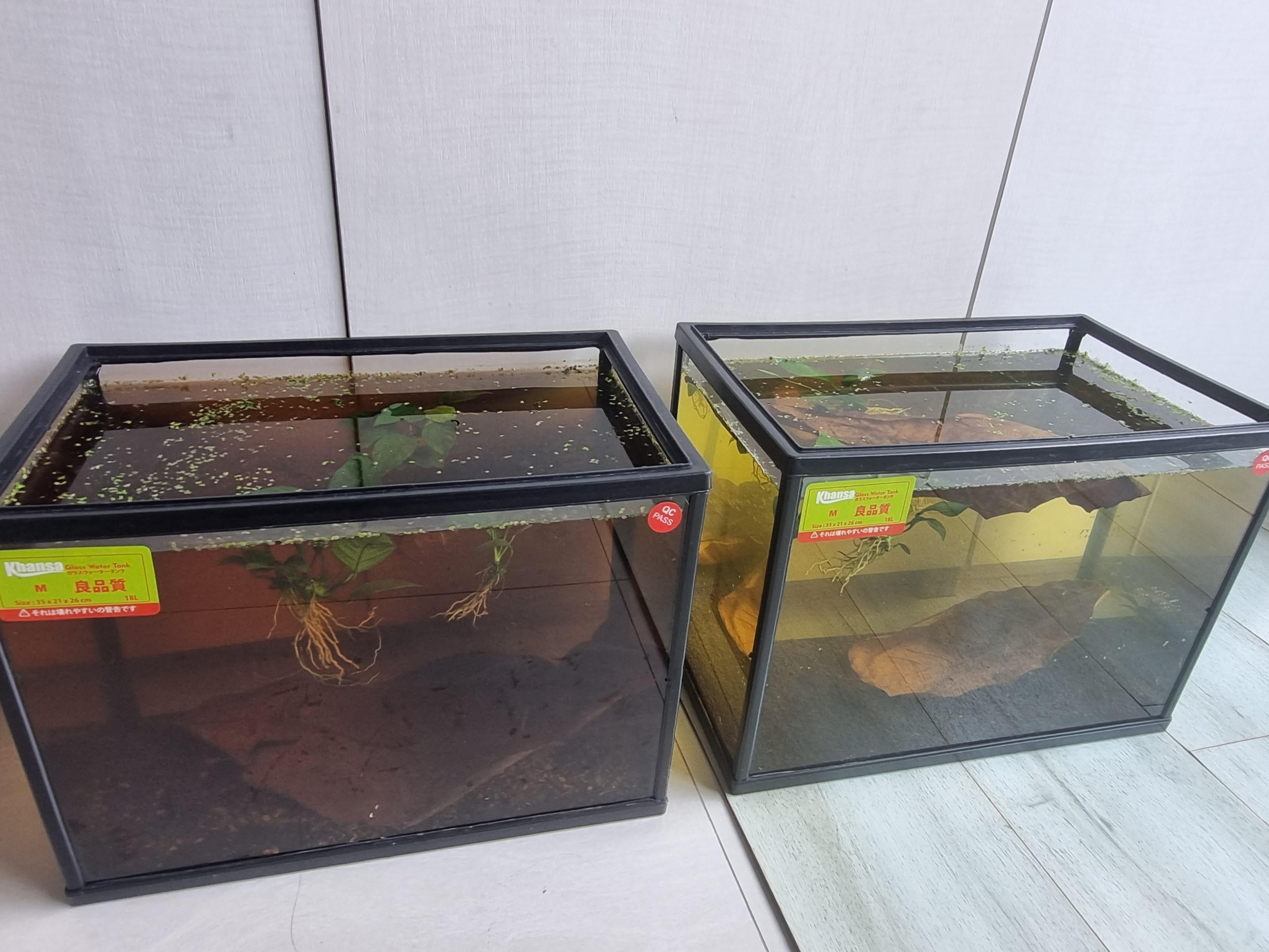 The tanks are almost ready, I'm just waiting on the API ammonia test as well as some other more minor stuff like heaters, rocks, some more plants, etc etc. I thought I'd have more time, but I guess I missed the fact that one of the betta fish was sick (it's really hard to monitor their condition as a beginner + they're stuck in such a small space), and one of them passed away.