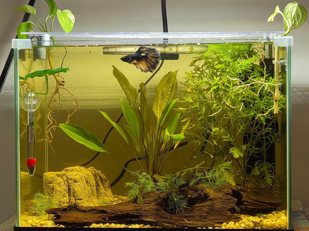Hi! I've had Fih for just under 2 weeks now and I'm wondering if there's ways I could improve his home, he lives in a 20L tank with a filter and heater <3