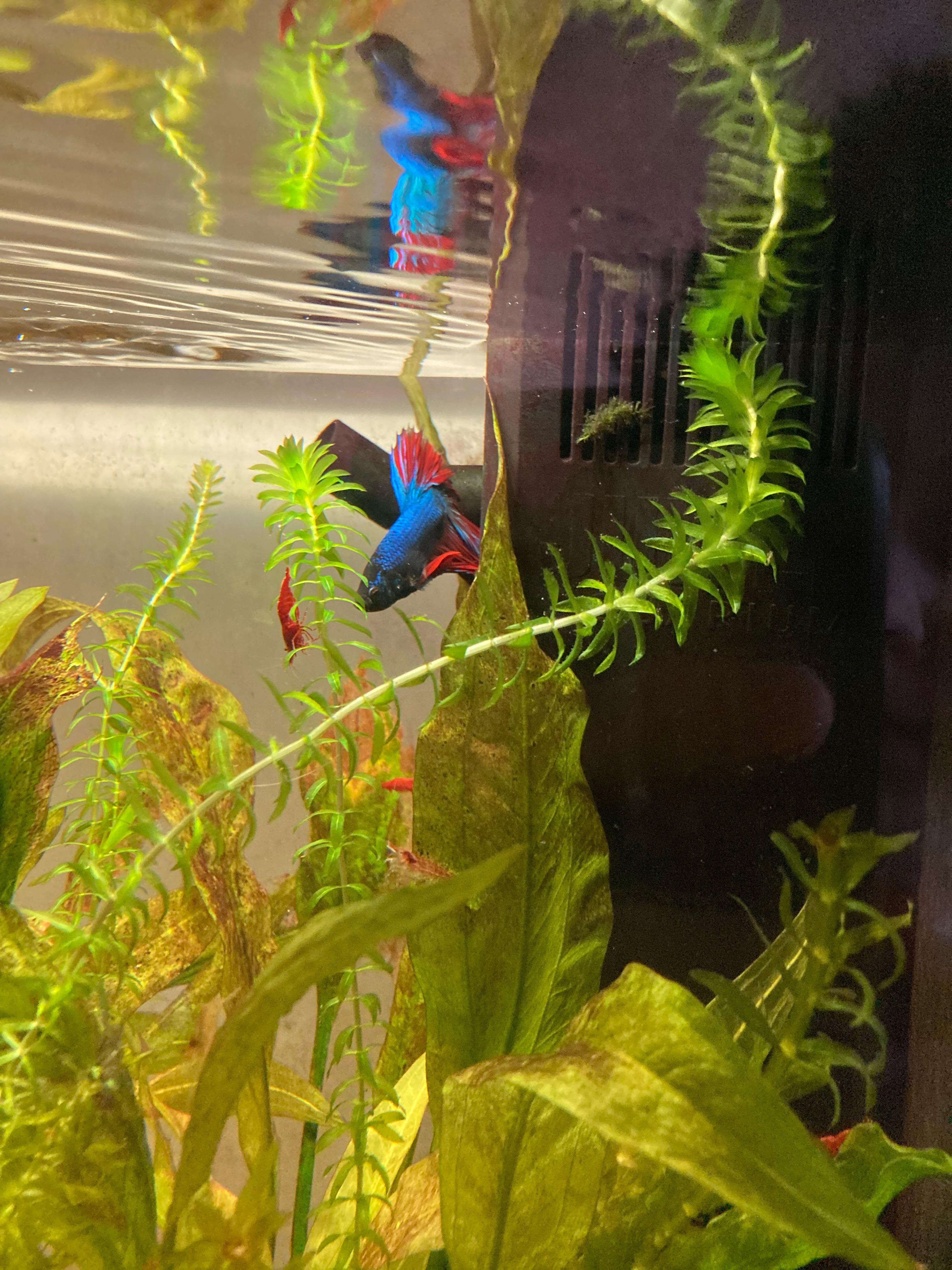 my betta is acting really tired and lethargic but eats fine and doesn’t have puff eye or something like that, is there anything i can do to excite him and make him more active? i have a 110 litre tank with neon tetras glowlight rasboras julii corydoras and cherry shrimp