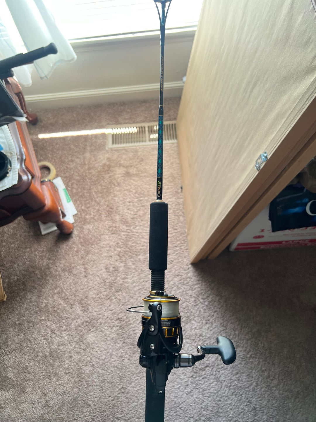 Daiwa bg2500 and the rod I don’t know much information about zenaq “Jigger Trust” it’s 4’8” and pretty stiff for how thin it looks. The daiwa reel I think I’ll put some braid on but not sure what type for this outting and if it even fits this rod for the purpose. Thanks for any input!