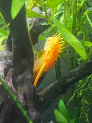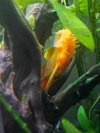 He has rested on this tree since he was just a fry, he's gotten larger and his mouth is too big to properly suction on his favorite spot….. So now he does this. And yes there are tons of other places, but he likes this one apparently.