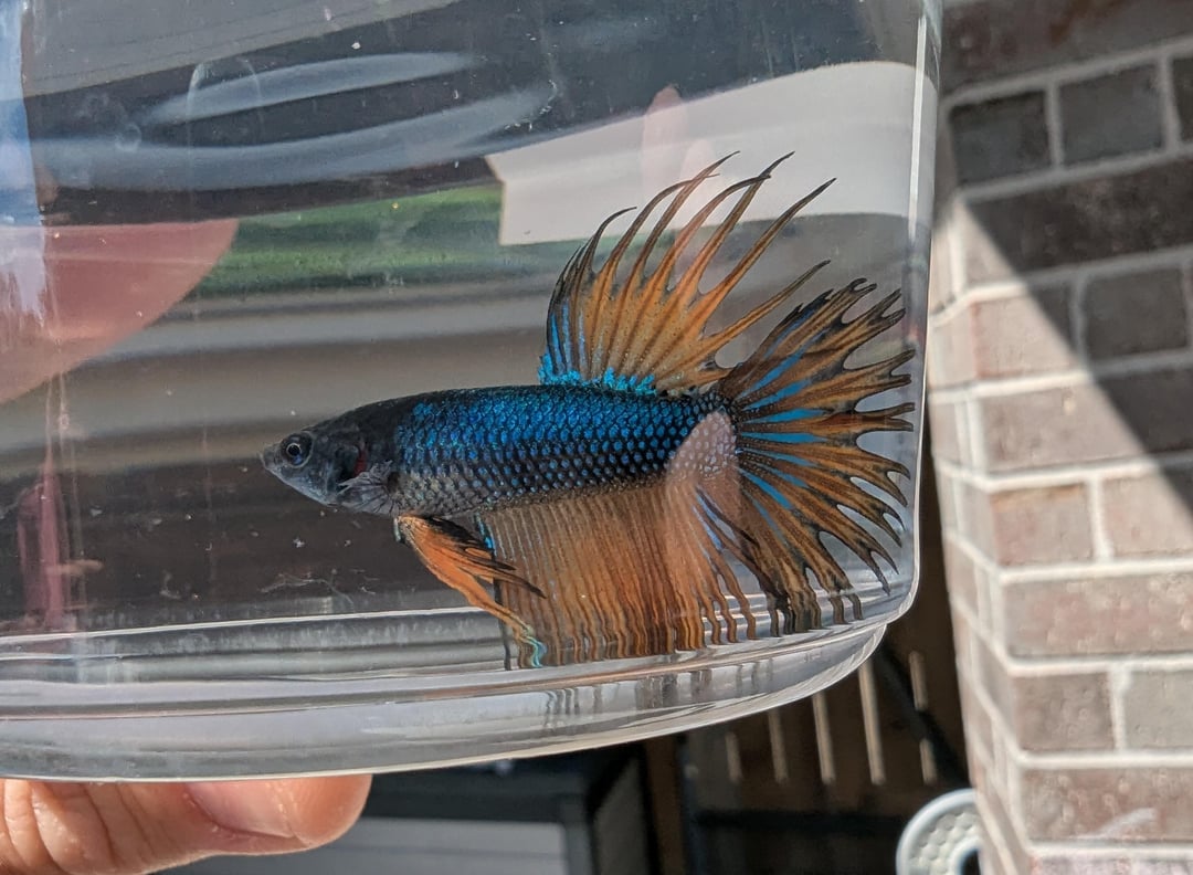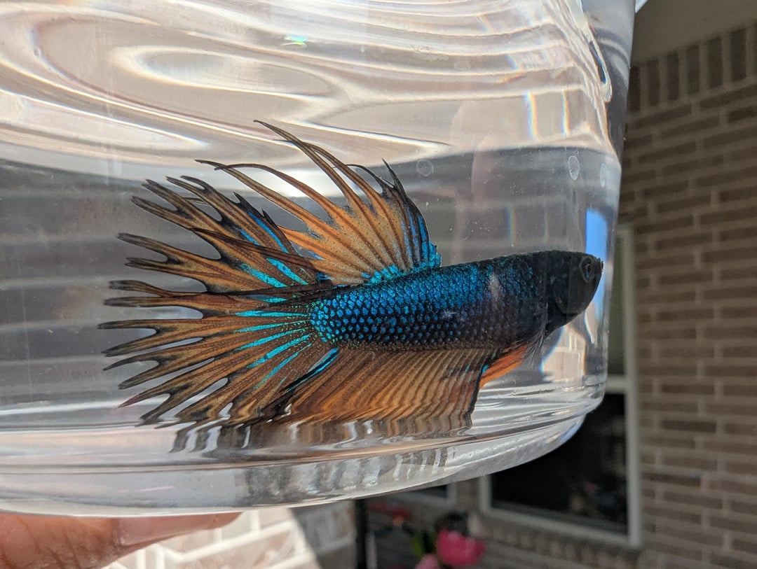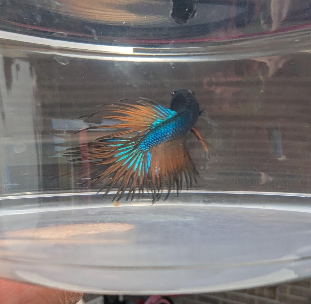 I hope his fins fill out once he gets in a good tank, they look like they’re receding. He’s so pretty, I can’t wait to see the glow up