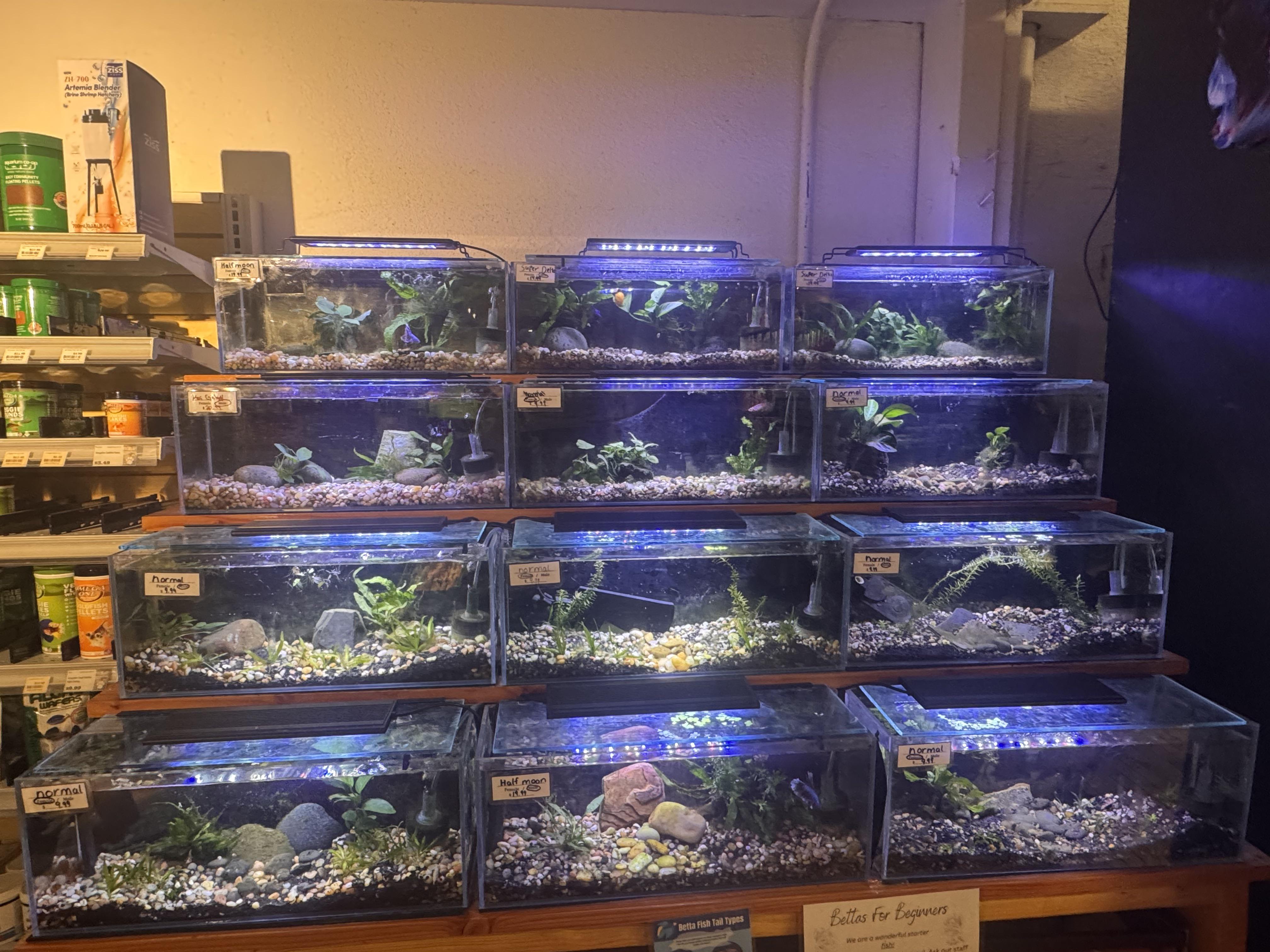 Very nice! The closest LFS to me (2 hours away) has his bettas in 2.5 gallons with heavy plants and filters. So nice when they actually care!