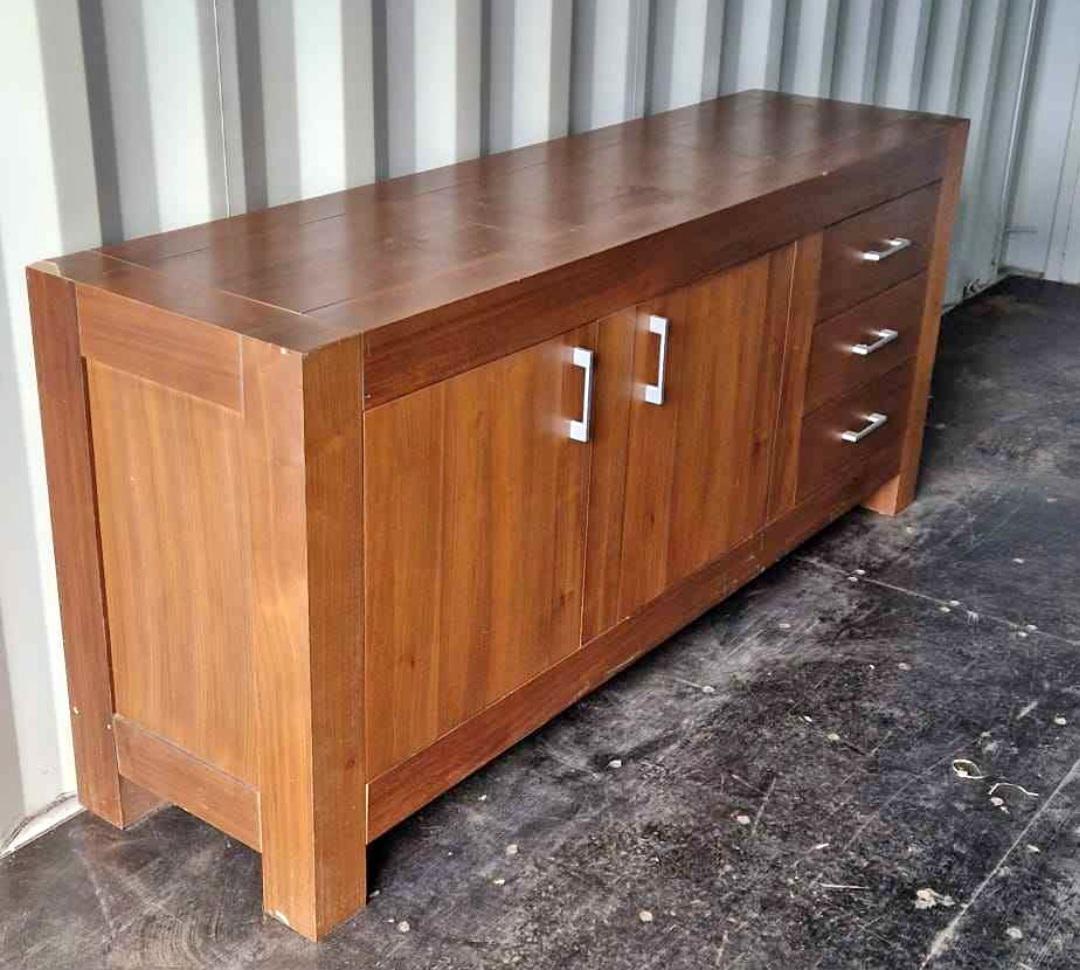Secondly get inside and support the middle using either one 2 x 4 in the centre or even better two equally distanced. You will probably have to cause some damage to the interior as the crucial thing is they must run directly from the floor to the underside of the cabinet top in one piece. Then you’ll be good to go.