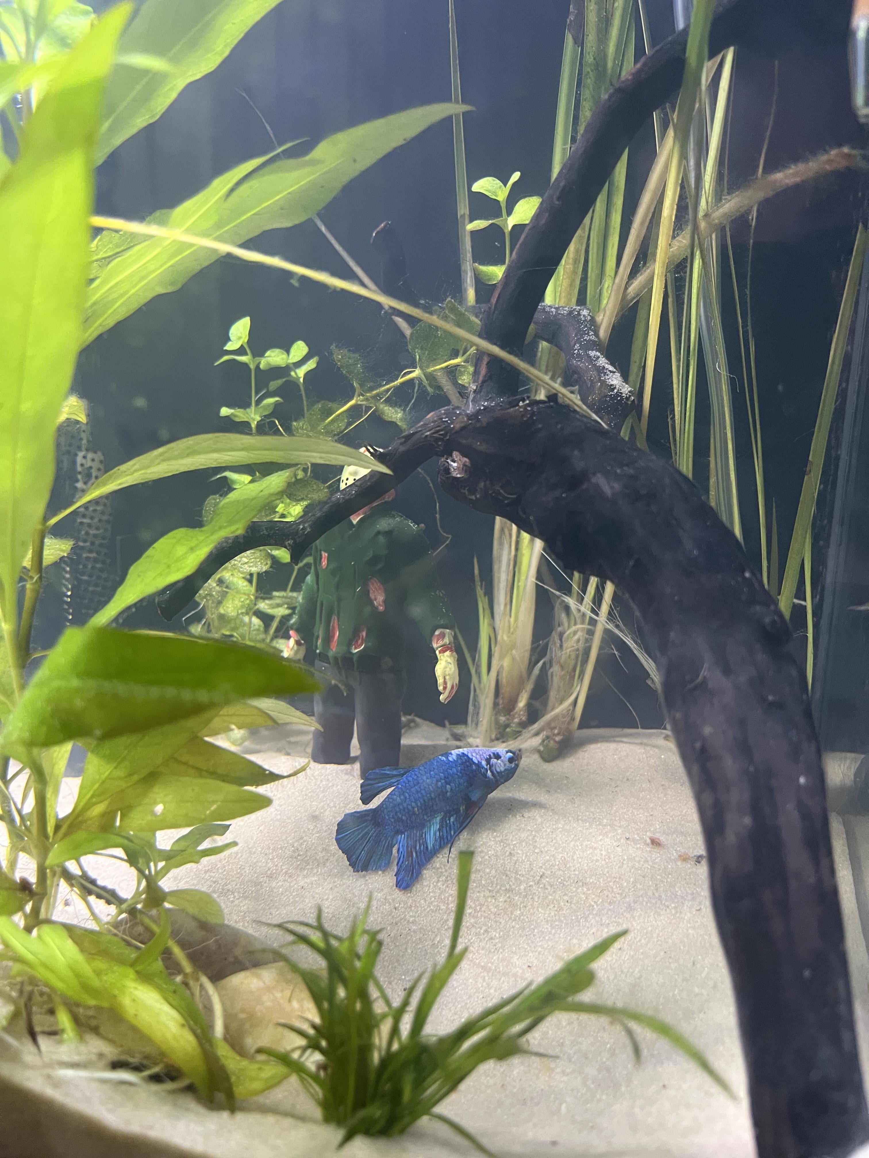 Betta fish like to rest occasionally. I had to take a decoration away from one of mine because he liked to stick himself inside a small hole, and he was gonna get too big and be stuck in there one day. Here’s an example:
