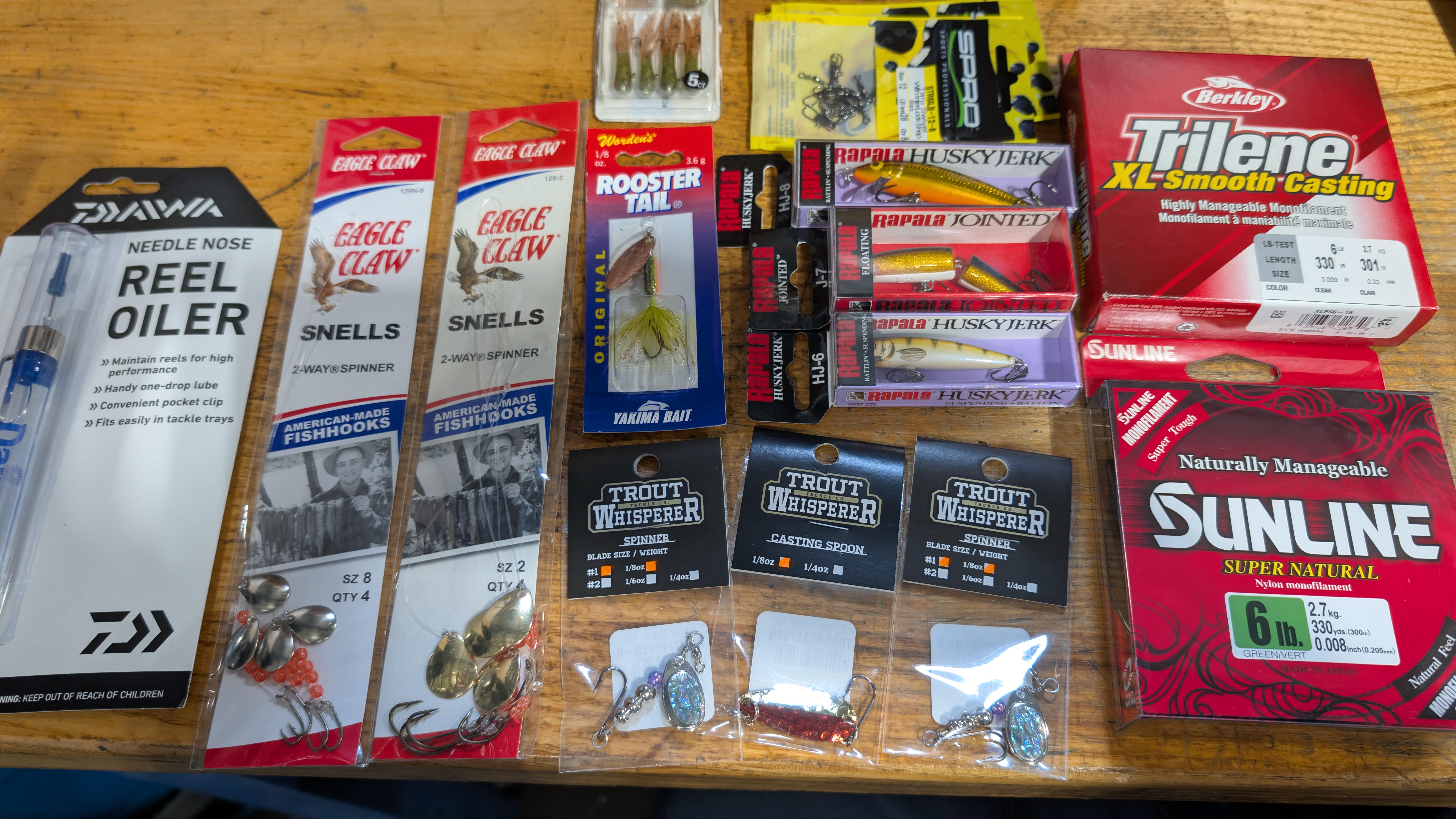 I also bought some Eagle Claw Snells as I grew up catching everything on them as a kid. I plan on taking my sister's army of kiddos out fishing and figured these would be a great option with a worm and bobber. The Trilene line and swivels are for the few poles I'll set up for the kids, I plan on using the Sunline 6lb test on my pole.