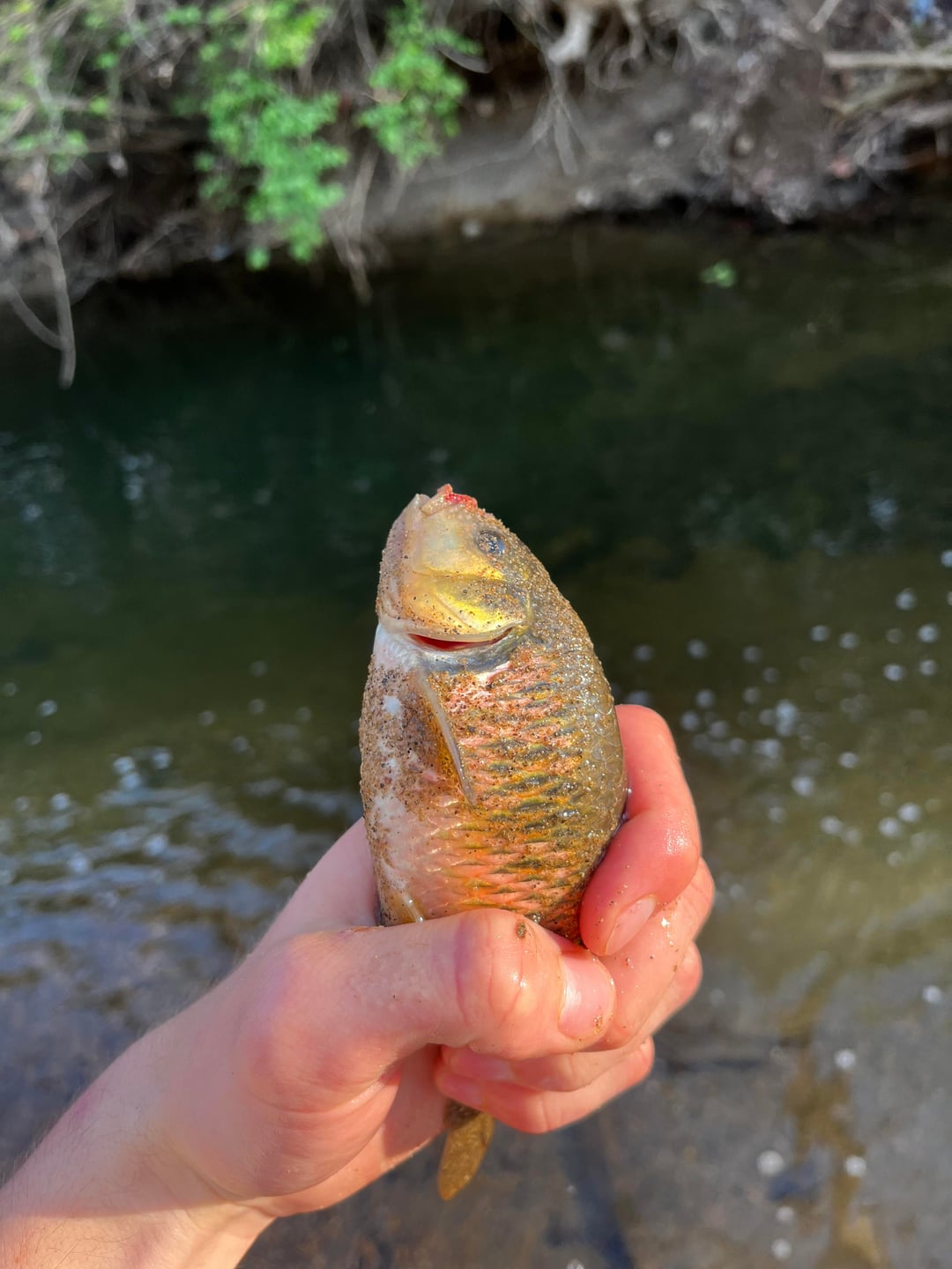 I made a post the other day about my struggles to catch or find any spots. Spent time at multiple spots researching everything I could and was skunked every single time. I began to get a tiny bit depressed about it because I figured I was just not good at it. Today I planned it out, waited for warmer weather, and caught two! I had 5 total on the line but the others were smaller and let go, 1/3 that got off got caught on a stick right before I pulled him up😐. Overall I’m very happy.