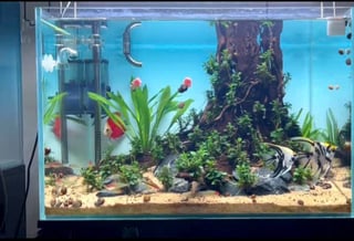 my dad has 5 beautiful tanks (all diy). heres 4 of them but some were taken a while ago. the first one is the most recent and its his only saltwater tank. hes the dad who keeps the dead fishes in the freezer lol. you can see the clown fish when it was still alive in the 3rd pic!!