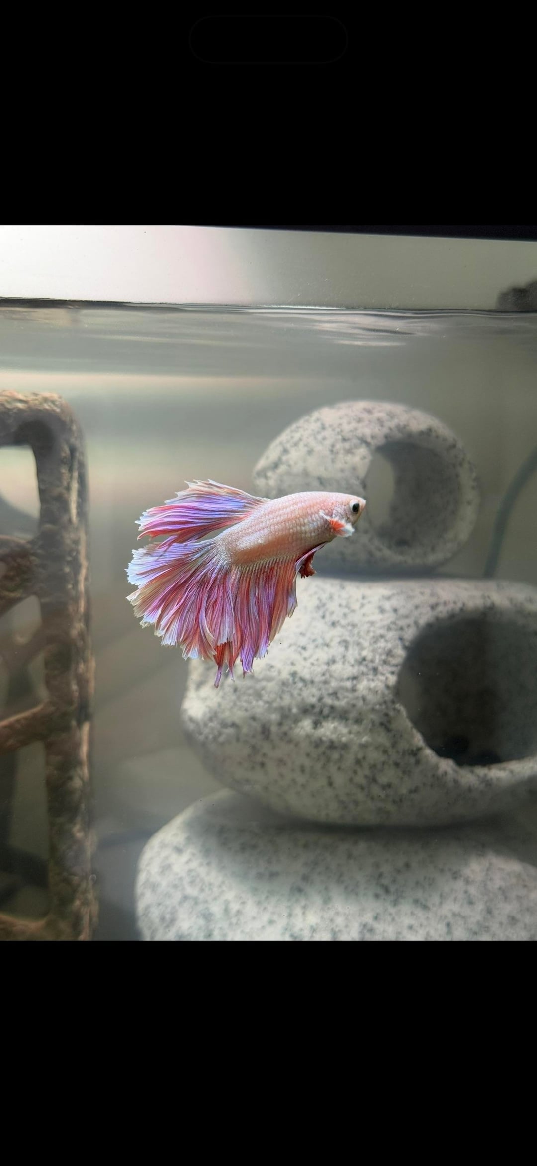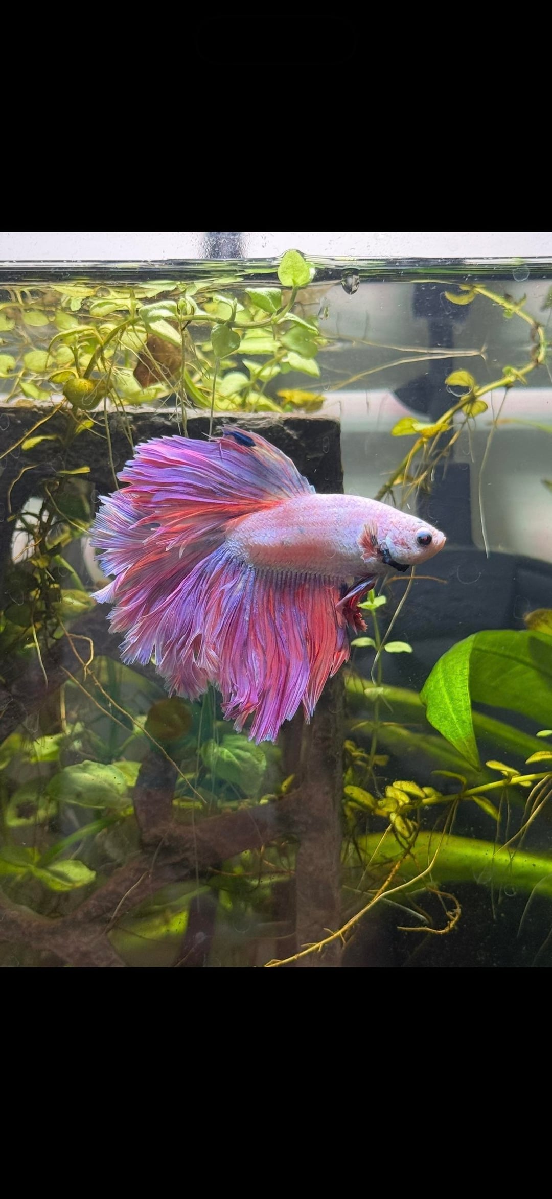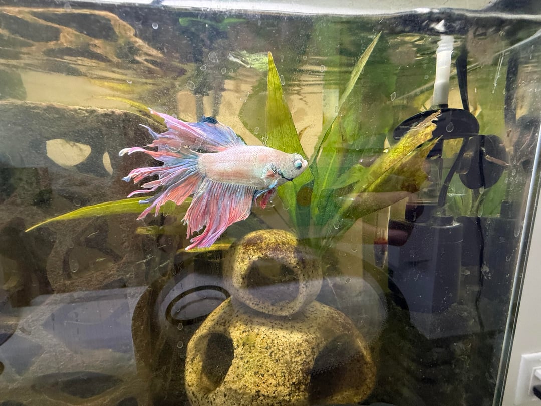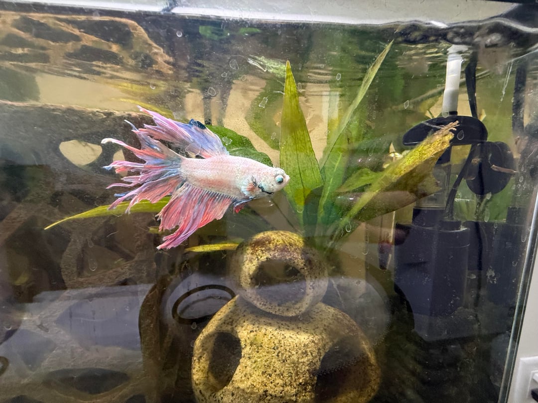 Here are some photos from Nov 2025 to today (first 2 are from Nov). I’m worried he has fit rot as I’m noticing his fins are way more jagged and not as full. I’m so confused because I change his water 25%-50% once a week. I test his water often and everything comes back normal, he has a heater and a filter and live plants. I also recently in the last few weeks have been adding tannins to his tank. The only issue I’ve had is lots of algae in the tank, but I’ve been managing it. I don’t know how he could have fin rot, as I think I’m doing everything right? Please help! Is this fin rot and if it is what do I do to help him?