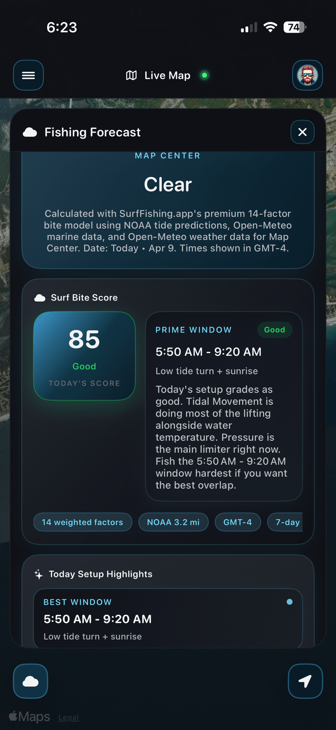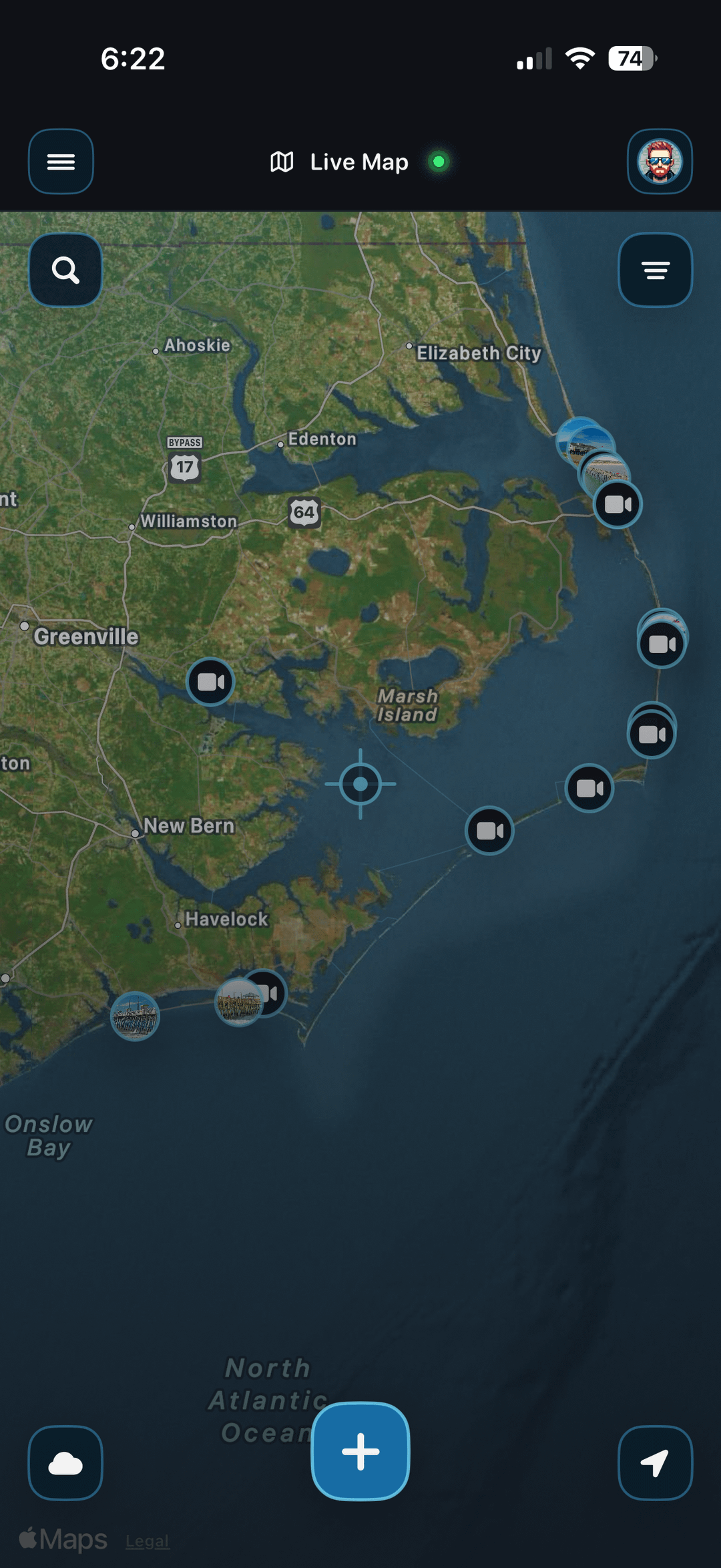 The Live Map is the heart of Surf Fishing App, giving you a real-time look at what’s happening on the coast. Check pinned catches, spots, fishing reports, hazards, and live pier cams + location cams all in one place, then use that information to plan smarter before you ever hit the beach.