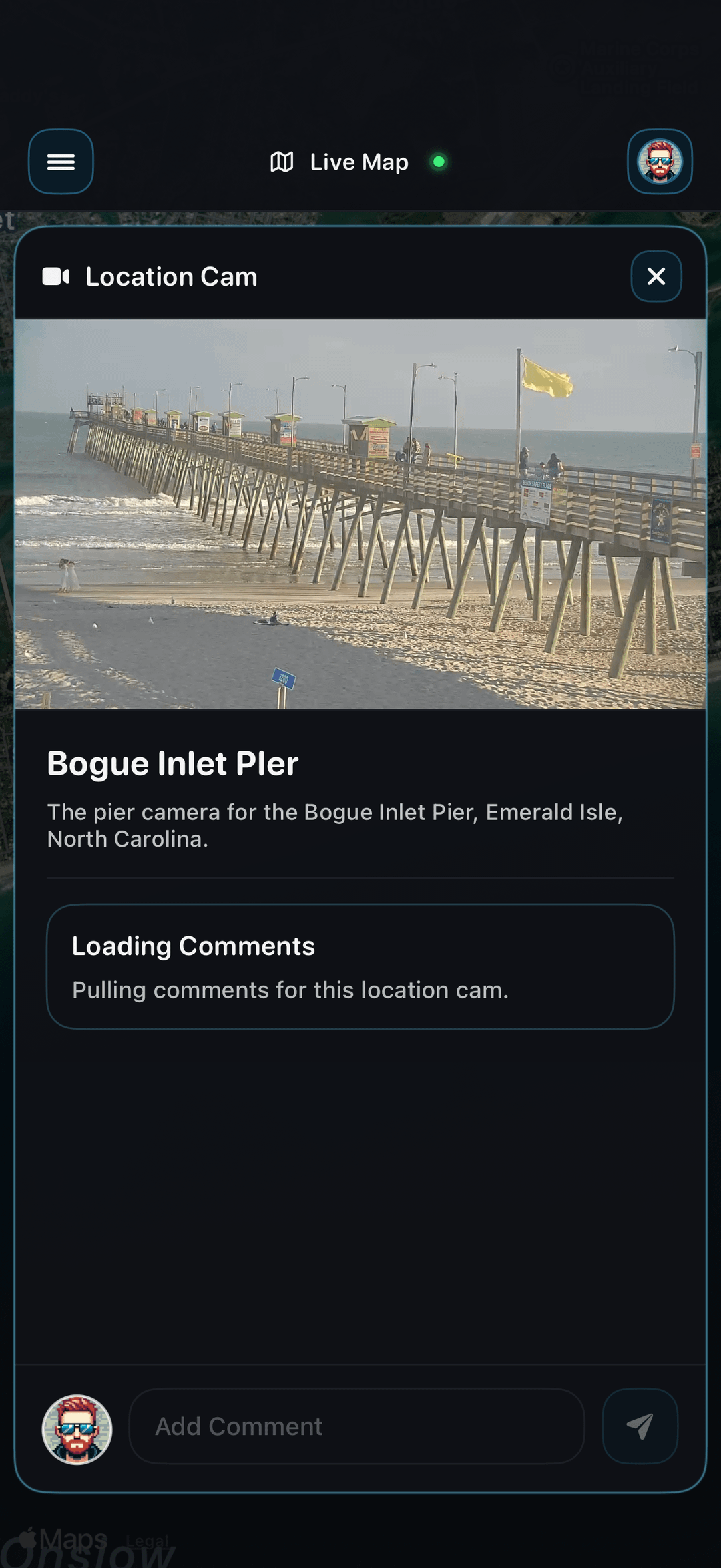 - Live pier cams and location cams to check coastal activity in real time