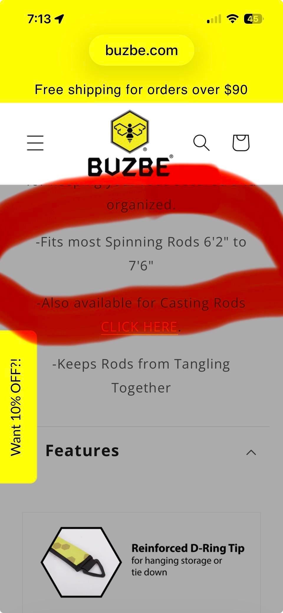 Got some Buzbee spinning rod sleeves to try. Were supposed to work on spinning rods up to 7 foot 6 inches. Way too short to even fully cover my 7 foot spinning rod.