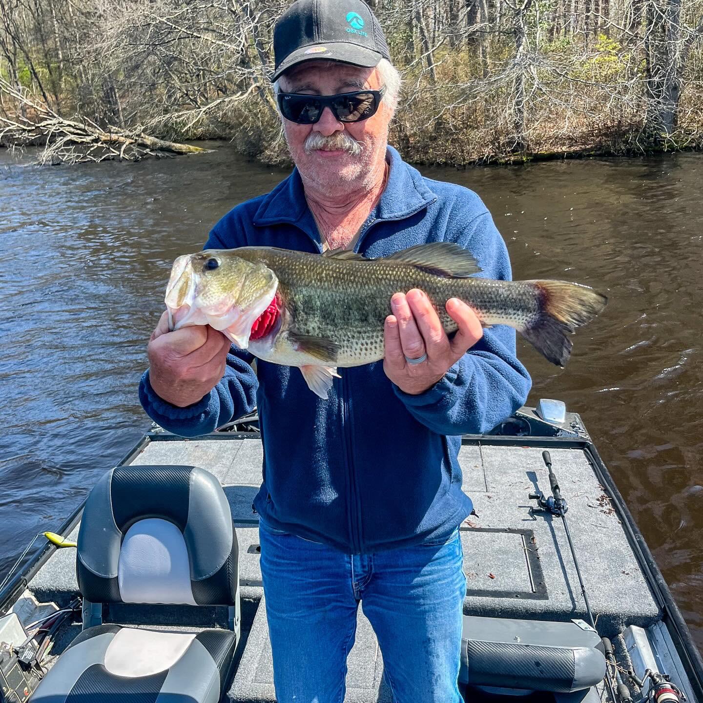 Today he landed this 4.53 on a trusty green pumpkin Evo with a Freeloader trailer. Biggest freshwater fish he’s caught in decades. Way to go Pops 😬😬😬