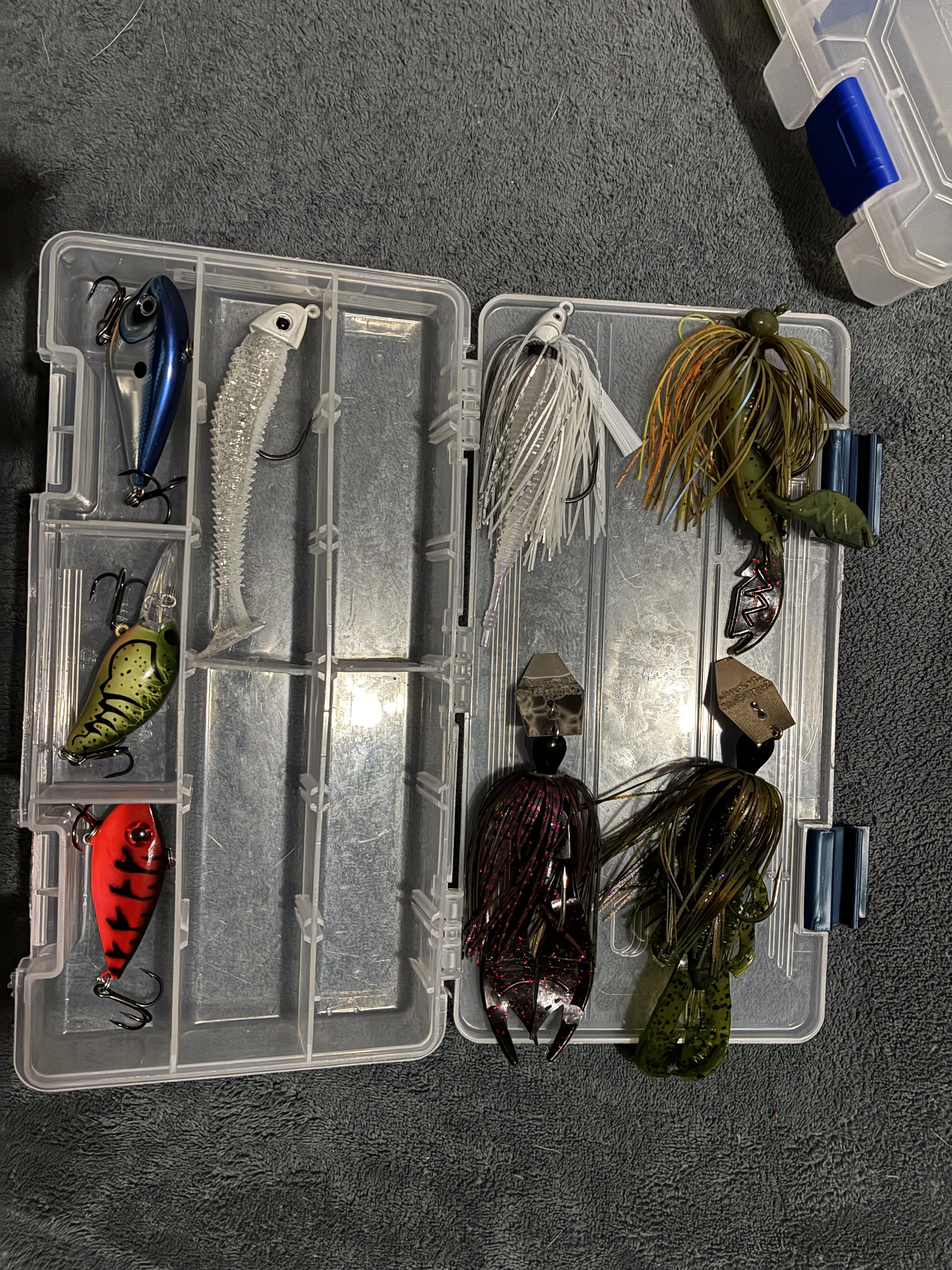 1. Add some worms for sure, need a wacky and Texas rig every now and then for sure. Also try some jerkbaits I like a red later in the day and a greener color during the day
