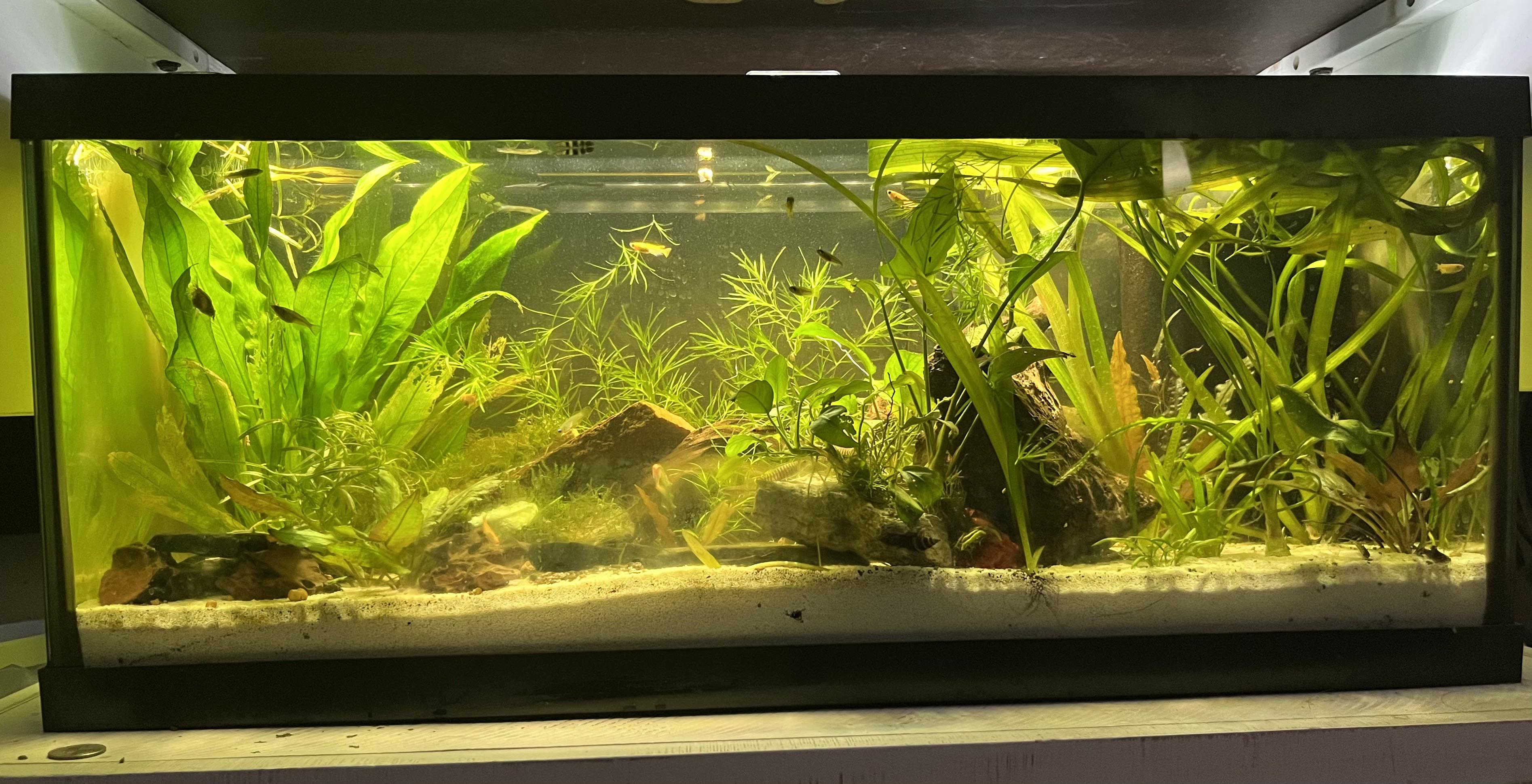Here’s a picture of my rice fish and shrimp 20 long just because.