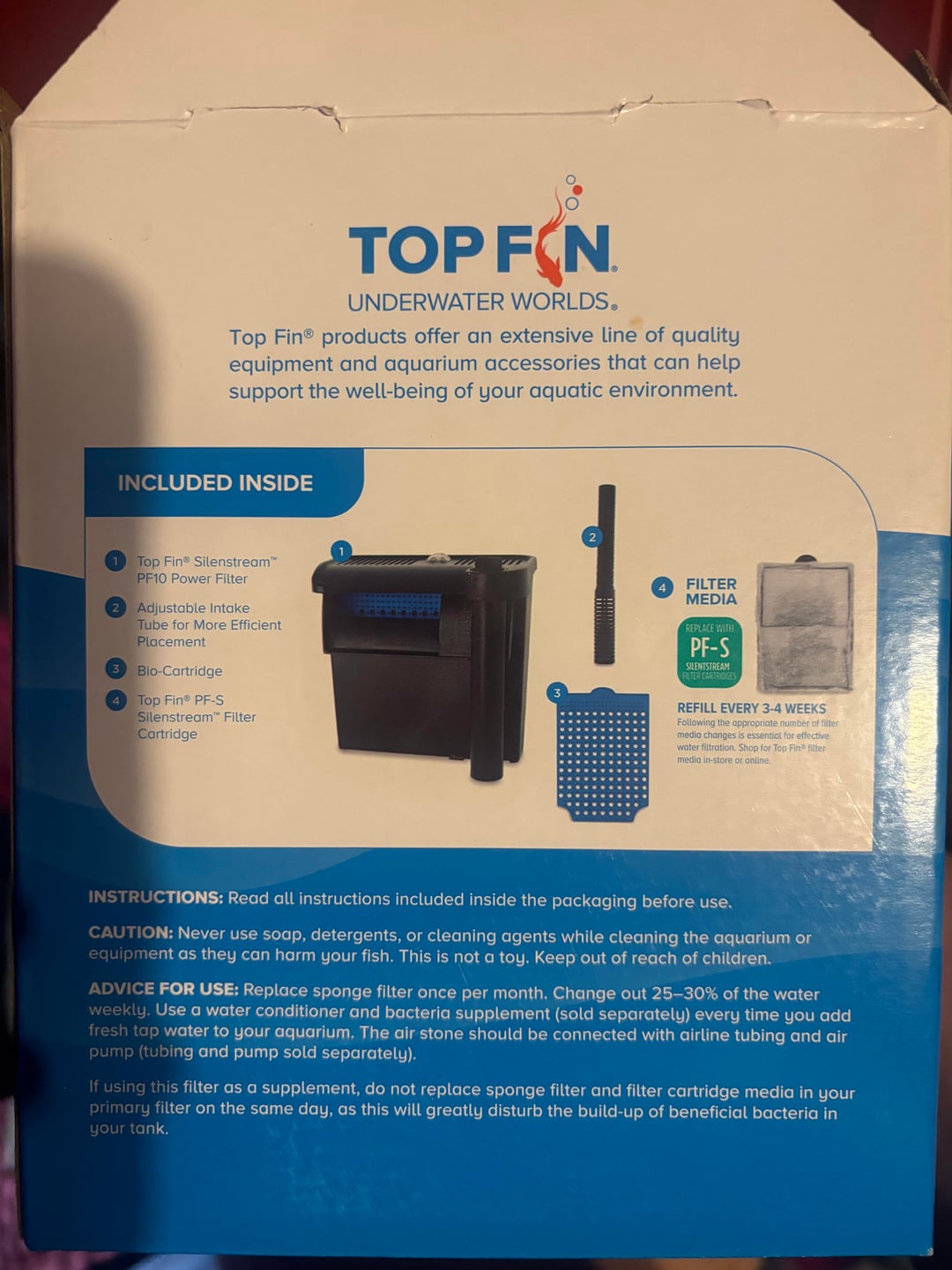 i bought a 10 gallon starter tank from petsmart. if you’re unfamiliar, in this kit, theres a heater, a thermometer, a vial for free water testing, and a filter. said filter has 4 parts. mine didnt come with part #2. (second slide)
