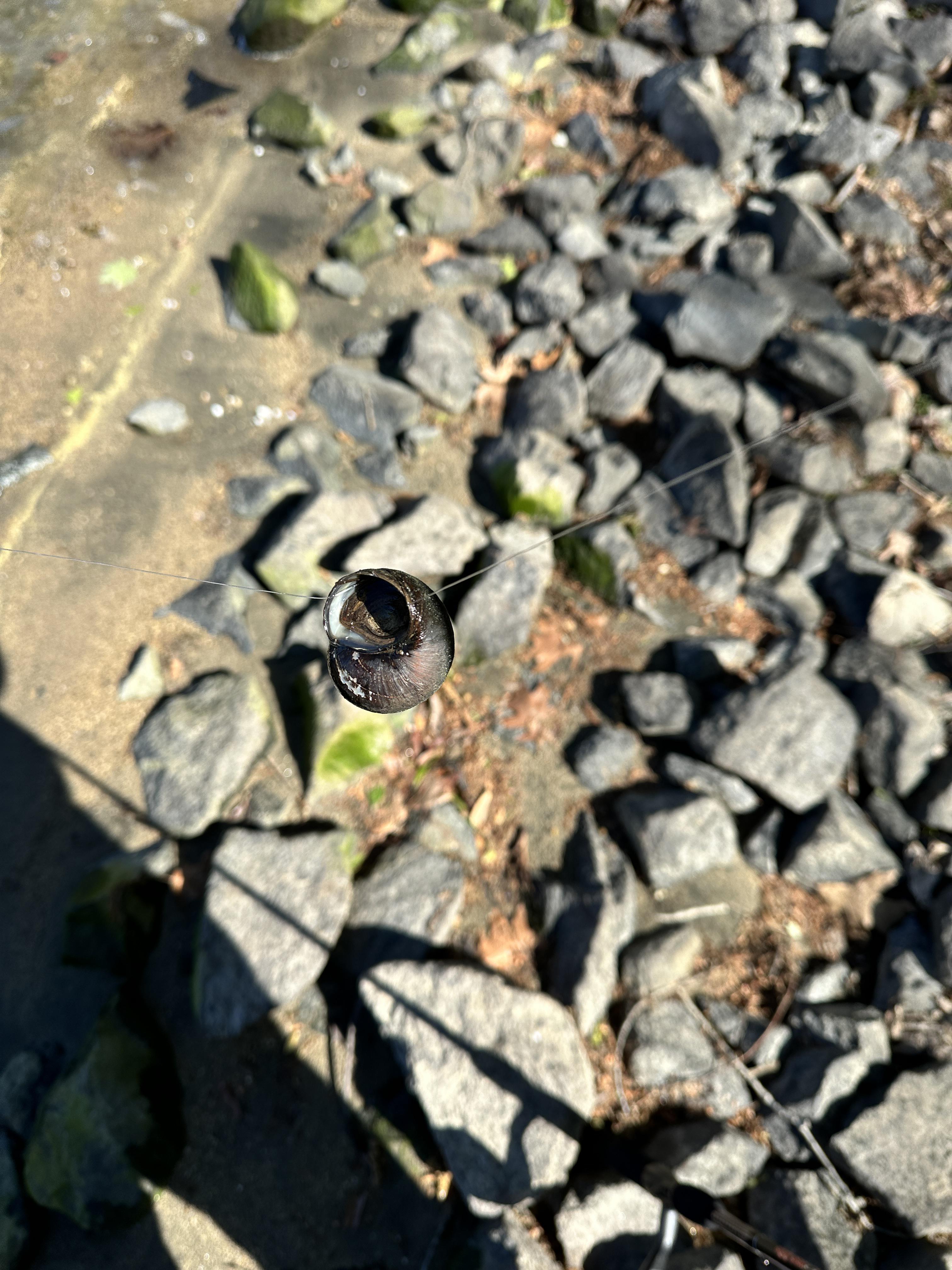 I went fishing yesterday. I put out one line with a bottom bait and used the other pole for a small jig. No luck. When I pulled in the line with the bait, it felt odd. Reeled it in and found this snail. It must have been crossing my line and pulled itself in along with the line. It took a while to get the snail off the line. So I had no fish but got a snail. 🙂
