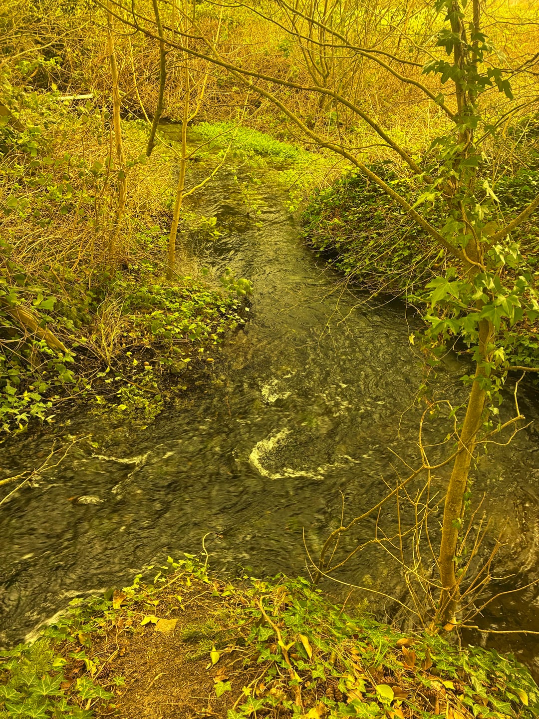 l've been checking out this small stream near me. It's pretty narrow but surprisingly deep in spots like hip-deep and the current is moving really fast. The water is crystal clear, so I'm having a tough time seeing any fish before they probably see me and bolt. I did see a few crayfish, so I know there's life in there.