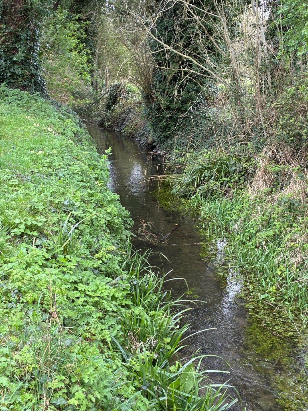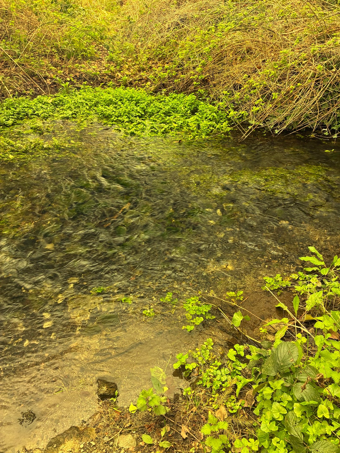 I've been checking out this small stream near me. It’s pretty narrow but surprisingly deep in spots like hip-deep and the current is moving really fast. The water is crystal clear, so I’m having a tough time seeing any fish before they probably see me and bolt. I did see a few crayfish, so I know there's life in there.