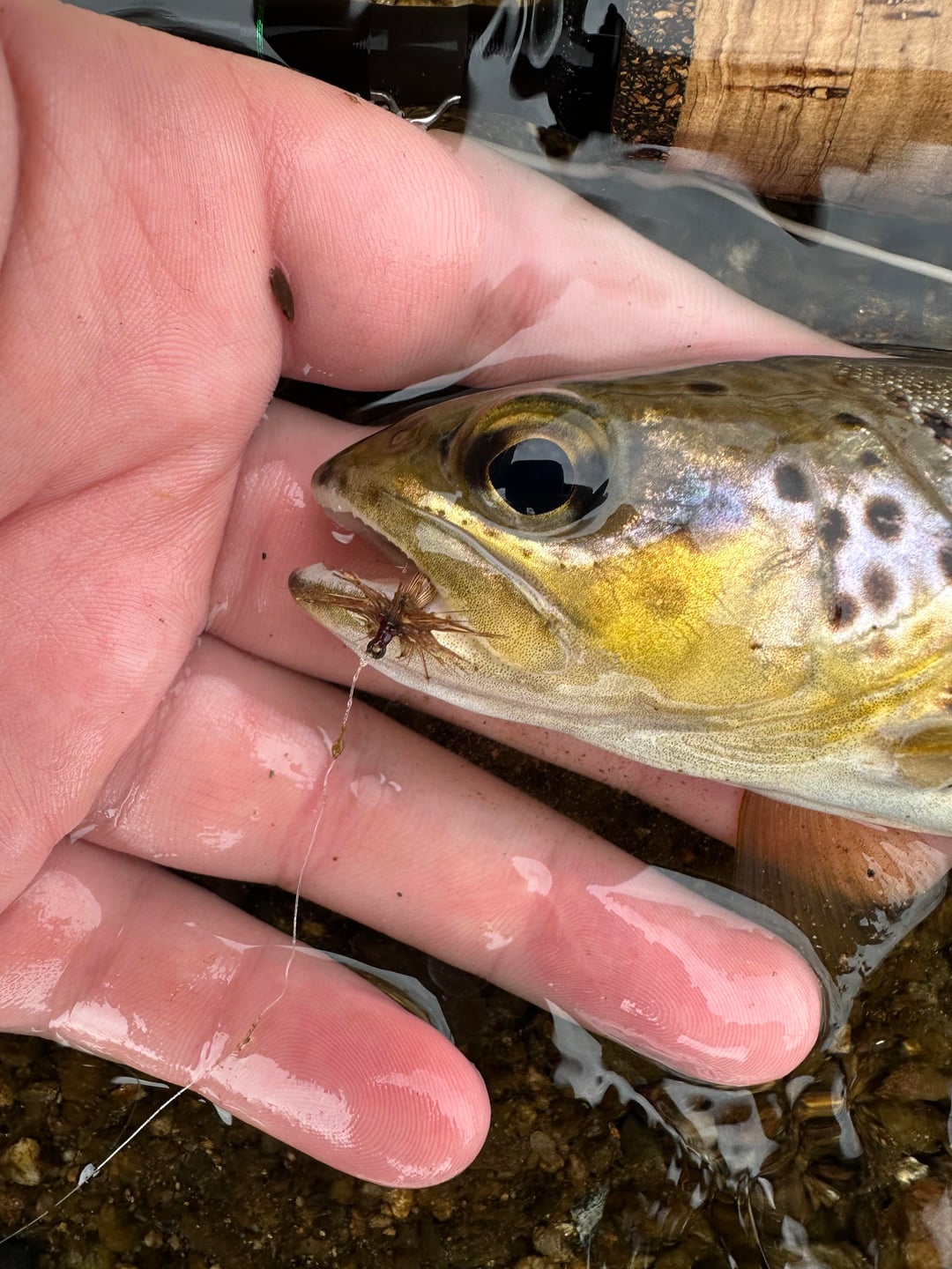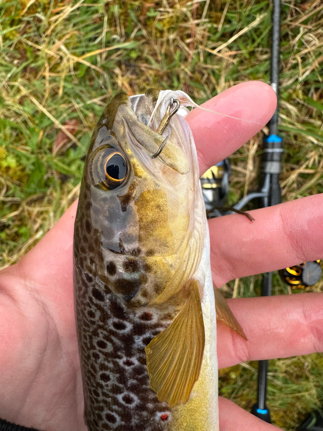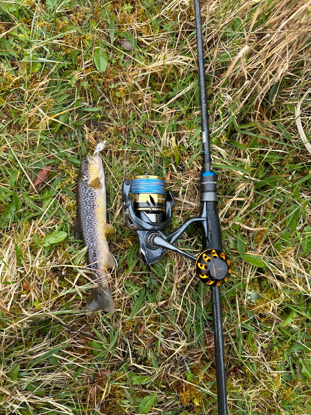 I was using spinning gear and then also fly fishing. the setup is a bit heavy for this size trout but I could only bring one spinning setup for broth trout and pike so I just brought my medium light spinning setup. Posted by BANDITFISHING