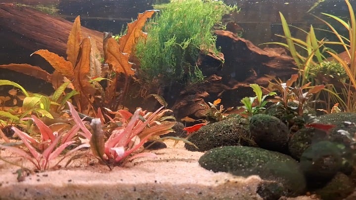 I've had this tank set up for a while now, and it never really got to where I wanted it. I imagined it to be sparsely planted, with mainly rocks and sand. But I can't stop buying every beautiful plant that I see in my LFS, and my other tank with Co2 keeps growing out the top so I gotta reuse those plants as well… and well, this is the result for now.
