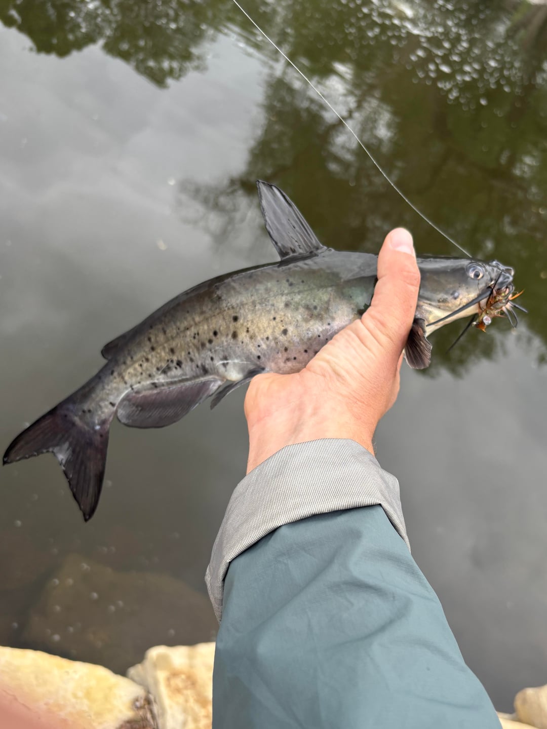 I tell myself I’m fishing for largemouth right now, but truth is, I’ll take whatever I can get. Small pond in the neighborhood that was worried got wiped out by some recent rock retention walls that were just put in. Usually there is some bluegill and largemouth cruising the shallows, but I decided to throw a little deeper and got into these two. First time catching a channel cat on the fly rod. Pretty good fight for their size!